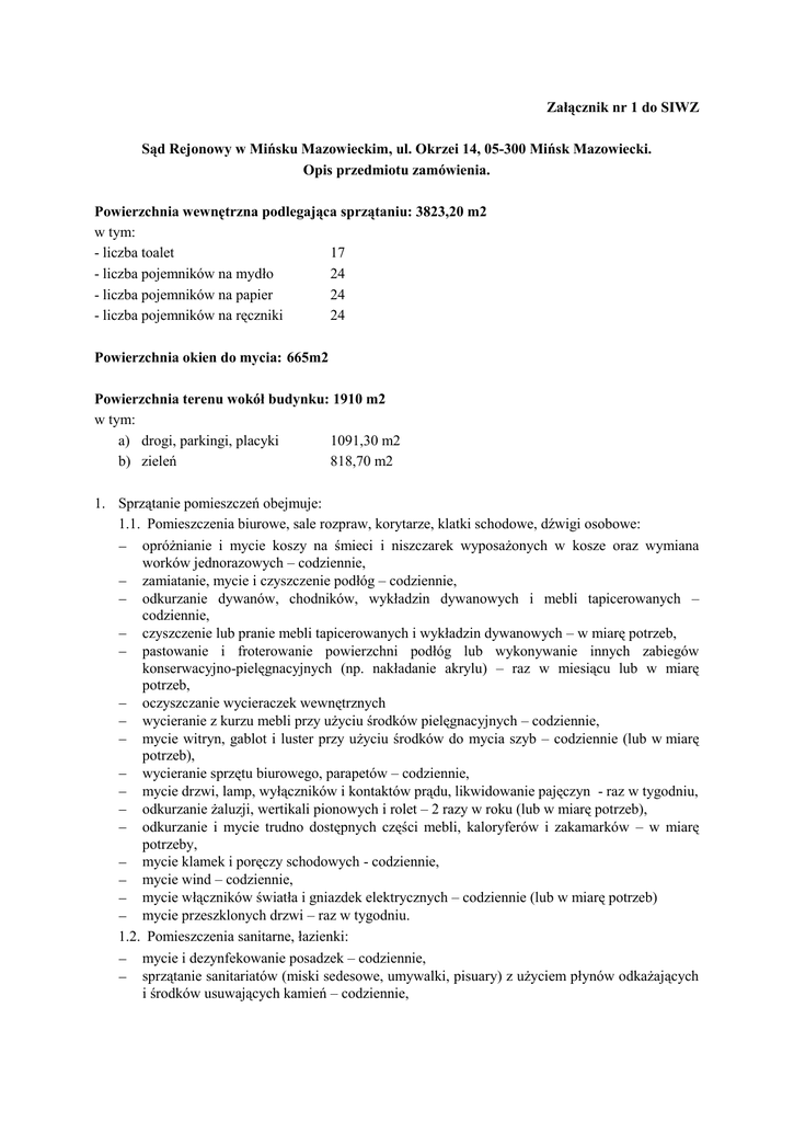 Załącznik nr 1 do SIWZ Sąd Rejonowy w Mińsku Mazowieckim, ul