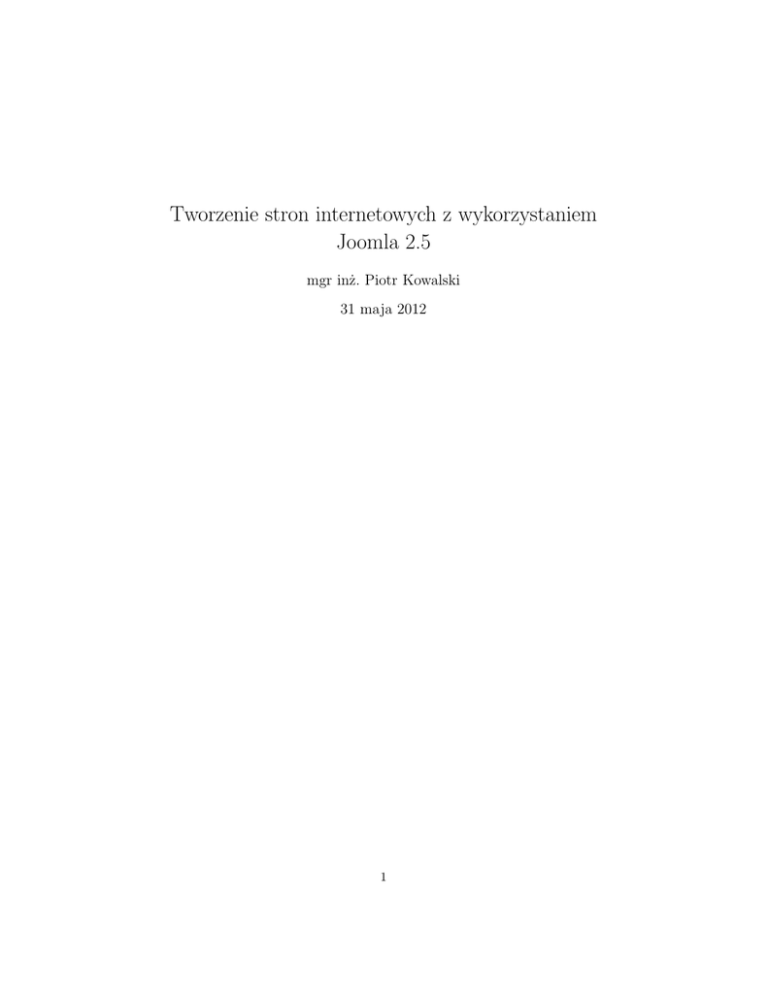 stron internetowych z zarządzaną treścią z wykorzystaniem platformy Joomla 2.5