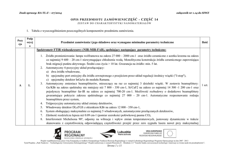 załącznik nr 1.14: Opis przedmiotu zamówienia