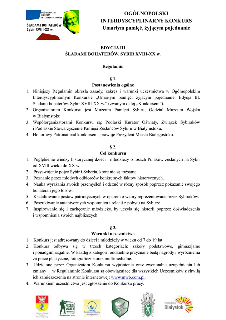 regulamin konkursu - * - Muzeum Wojska w Białymstoku