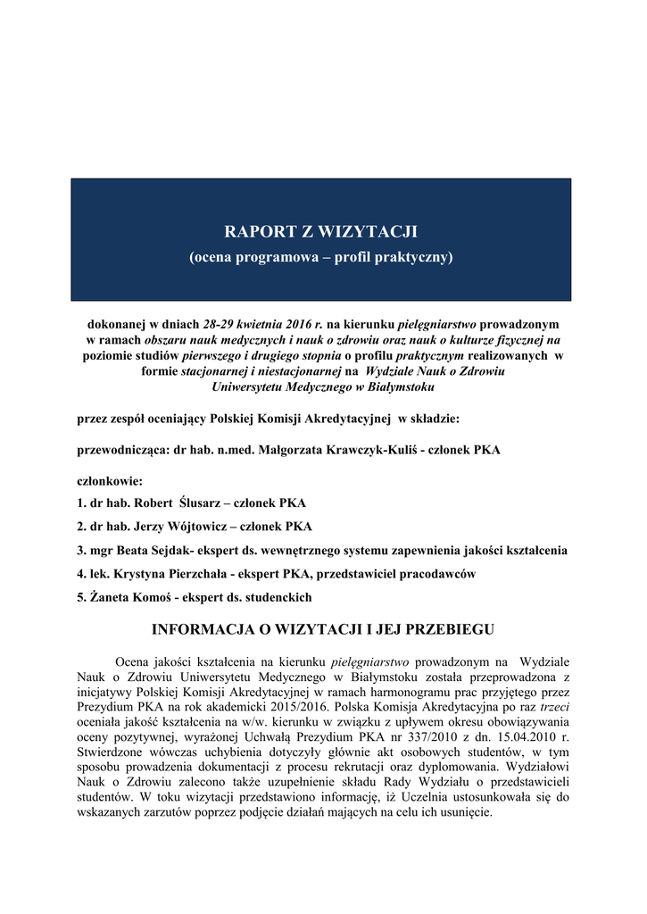 raport z wizytacji - Polska Komisja Akredytacyjna