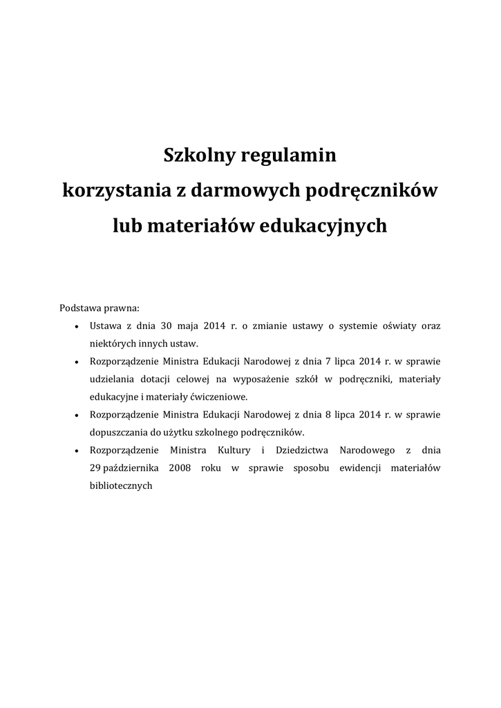 Szkolny regulamin korzystania z darmowych podręczników lub