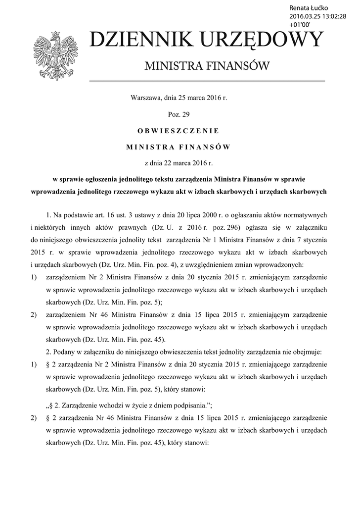 Dz. Urz. Min. Fin. z dnia 25 marca 2016 r.