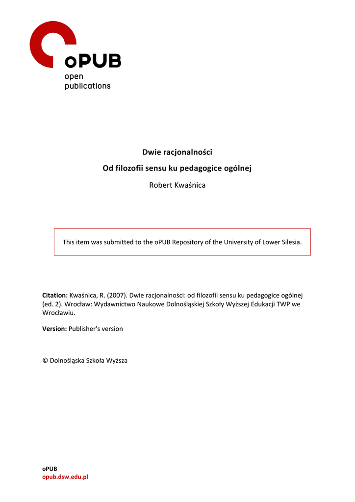 Dwie racjonalności: od filozofii sensu ku pedagogice ogólnej
