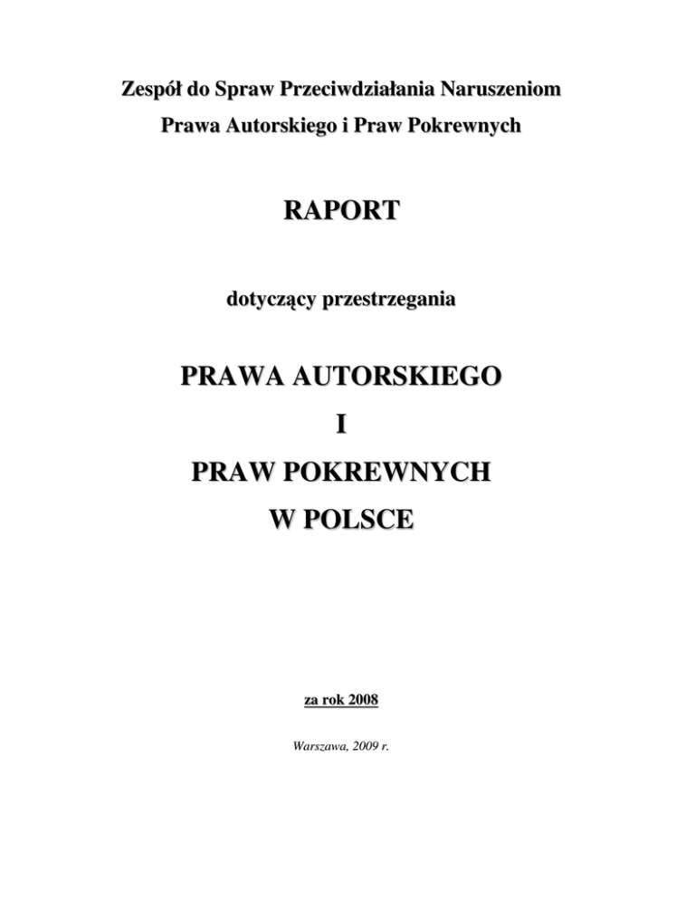w dokumencie rządowym pt. „Program na rzecz ochrony prawa autorskiego i praw pokrewnych 2008 2010”....................................................................................................................................................... 30