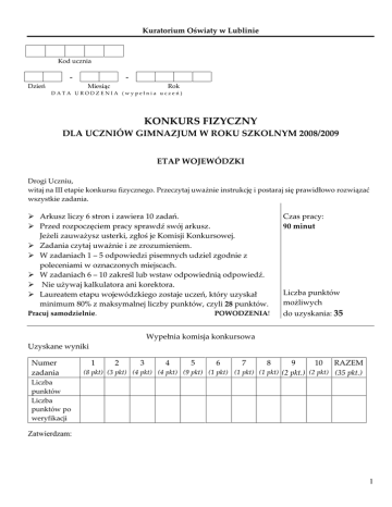 konkurs fizyczny - Kuratorium Oświaty w Lublinie