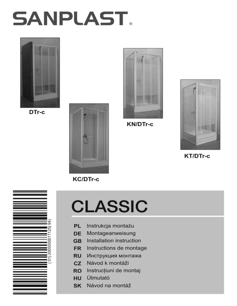 Instrukcja montażu kabin prysznicowych Classic typ: DTr