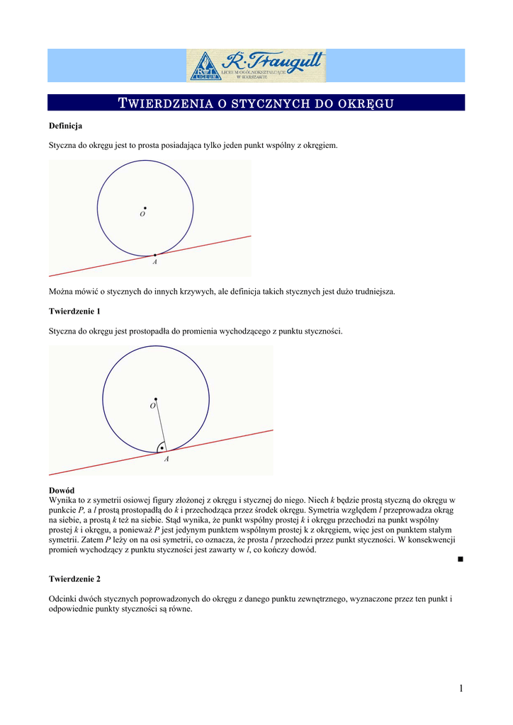 twierdzenia o stycznych do okręgu