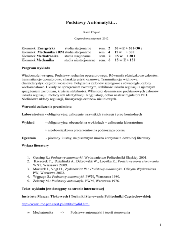 3. Mazurek J., Vogt H., Zydanowicz W.: Podstawy automatyki. Oficyna Wydawnicza