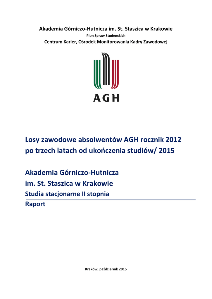 Losy zawodowe absolwentów AGH rocznik 2012 po trzech latach od