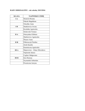 RADY ODDZIAŁOWE - rok szkolny 2015/2016 KLASA NAZWISKO I