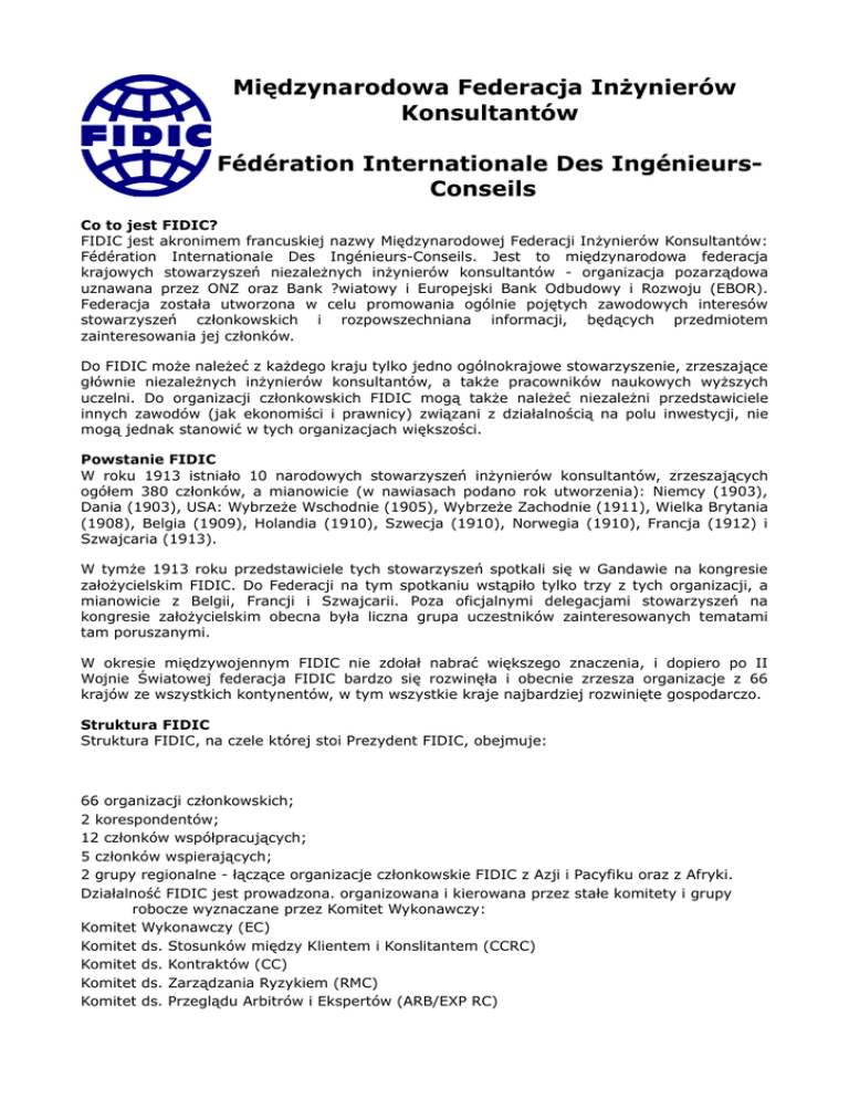 Fédération Internationale Des Ingénieurs-Conseils. Jest to międzynarodowa federacja