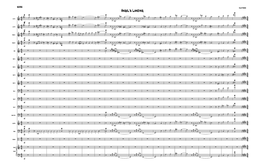 score alto 1 alto 2 & & tenor 1 & tenor 2 & bari & trpt 1 & trpt 2 & trpt 3 & trpt 4 & tbn 1 tbn 2 tbn 3 bass tbn guitar bass drums piano piano 4 4 4 4 4 4 4 4 4 4 4 4 4 4 4 4 4 4 ?4 4 ?4 4 ?4 4 ?4 & 4 4 4 ?4 ÷ & 4 4 4 4 4 ?4 4 #U˙ F #U˙ F #U˙ F U̇ F F F F F F F F F F F U | F F F F U̇ U̇ U̇ U̇ ∑ Œ #œ œ #œ œ Œ #œ œ #œ œ Œ #œ œ œ nœ Œ #œ œ œ bœ ∑ #œ œ #œ œ #œ œ #œ œ œ œ œ bœ nœ œ #œ nœ ∑ # uw # uw uw # uw ∑ #œ œ #˙ w œ #˙. U̇ #œ œ #˙ w œ #˙. U̇ #œ bœ œ œ œ œ œ œ œ œ #˙. U̇ œ œ œ œ# œ œ œ œ œ œ #˙. U̇ ∑ ∑ ∑ ∑ ∑ ∑ ∑ ∑ ∑ ∑ ∑ ∑ ∑ ∑ ∑ ∑ ∑ ∑ ∑ ∑ ∑ ∑ ∑ ∑ ∑ ∑ ∑ ∑ ∑ ∑ ∑ U | Angel's Landing ‰ ÛÛÛ ‰ J bœ. ˙ ˙ ‰ Û Û Û ‰ #œ. #˙ J ˙ ‰ Û Û Û ‰ bœ. b˙ J ˙ . ‰ Û Û Û ‰#œ J #œ ‰ J# œ # œ #w ˙ ∑ ∑ ∑ ∑ ∑ ∑ ∑ ∑ ∑ ∑ ∑ ∑ ∑ ∑ ∑ ∑ ∑ ˙ ˙ ‰ ÛÛÛ ‰ J Ó Alan Ferber bœ. ˙ ‰ #œ. #˙ . ‰ Û Û Û ‰#œ J ˙ ‰ Û Û Û ‰ bœ. b˙ J #œ ‰ J# œ# œ #w ∑ ∑ ∑ ∑ ∑ ∑ ∑ ∑ ∑ ∑ ∑ ∑ ∑ ∑ ∑ ∑ ∑ ∑ ∑ Œ ÛÛ Û Û Û Û Û Û ∑ ∑ ∑ ∑ ∑ ∑ ∑ ∑ ∑ ∑ ∑ ∑ ∑ ∑ ∑ ∑ ∑ ∑ ∑ ∑ ∑ U | U | #œ ˙ ˙ b˙ ˙ ˙ œ ˙ ˙ ˙ ˙ ˙ ˙. œ ˙ ˙ b˙ ˙ ˙ ˙. #œ ˙ ˙ #˙ #˙ ˙ #˙ ˙ ˙. ˙. ˙. #œ ˙ #˙ #˙ ∑ ∑ ∑ ∑ ∑ ∑ ∑ ∑ ∑ ∑ ∑ ∑ ∑ ∑ ∑ ∑ ∑ ∑ ∑ ∑ ∑ ∑ ∑ ∑ U | ∑ ∑ ∑ ∑ Ó Û Û Û ÛÛ Û Û Û Û Û |. U | Ó œ ‰ Jœ œ w ‰ Û Û Û ‰ bœ. b˙ J œ ‰ Jœ œ w ∑ ∑ ∑ ∑ œ ‰ Jœ œ w ˙. œ ˙ ˙ # Uw œ. ˙ #˙. œ ˙ ˙ # Uw #œ. #˙ ‰ ÛÛÛ ‰ J ˙. #œ ˙ ˙ # Uw ˙. œ ˙ ˙ # Uw #### ˙. #œ ˙ Ó Œ œ U #w #### ˙ ˙ ‰ ÛÛÛ ‰ J ‰ ÛÛÛ ‰ J ‰ Û Û Û ‰ #œ. #˙ J #œ ‰ J# œ # œ #w ˙ #### #### #### # Uw #### ∑ ∑ ∑ ∑ Ó Œ œ ˙ ˙ U #w #### ∑ ∑ ∑ ∑ Ó Œ œ b˙ ˙ a Uw #### ∑ ∑ ∑ ∑ ∑ Ó Œ #œ ˙ ˙ U #w #### ∑ ∑ ∑ ∑ ∑ ∑ Ó Œ ∑ ∑ ∑ ∑ ∑ ∑ ∑ Ó Œ œ ˙ ˙ Uw ∑ ∑ ∑ ∑ ∑ ∑ ∑ Ó Œ œ b˙ b˙ N Uw ∑ ∑ Ó œ ˙ ˙ b˙ ˙ ˙. œ ˙ ˙ U w Uw ˙ ˙ ˙. œ ˙ ˙ U w ˙ ˙ œ ‰ J œ œ w ˙ ˙ ∑ œ ‰ J œ œ w ˙ bœ. ‰ Û Û Û ‰ bœ. b˙ J ∑ ∑ ∑ ∑ œ ‰ J œ œ w ˙. ˙. ˙. ˙. œ ˙ ˙ b˙ œ ˙ ˙ #˙ ∑ ∑ ∑ ∑ ∑ ∑ œ ˙ ˙ #˙ ˙ ˙ œ ‰ Jœ œ w ‰ ÛÛÛ ‰ J œ ‰ Jœ œ w bœ. b˙ ∑ ∑ ∑ ∑ œ ‰ Jœ œ w ˙. ˙. œ ˙ ˙ Uw #### #### #### #### #### #### ∑ ∑ ∑ ∑ ∑ ∑ œ ˙ ˙ Uw w #### #### #### 3 4 3 4 3 4 3 4 3 4 3 4 3 4 3 4 3 4 3 4 3 4 3 4 3 4 3 4 3 4 3 4 3 4 3 4 ÿ ÿ ÿ ÿ ÿ ÿ ÿ ÿ ÿ ÿ ÿ ÿ ÿ ÿ ÿ ÿ ÿ ÿ 20 & 20 & 20 & 20 & 20 & 20 & 20 & 20 & 20 & # ## # # ## # # ## # # ## # # ## # # ## # # ## # # ## # # ## # ? # ## # 20 ? # ## # 20 ? # ## # 20 ? # ## # 20 20 & # ## # ? # ## # 20 20 # ÷ ## # 20 & # ## # ? # ## # 20 3 4 ∑ ∑ ∑ ∑ 3 4 ∑ ∑ ∑ ∑ ∑ ∑ ∑ ∑ ∑ ∑ ∑ ∑ ∑ ∑ ∑ ∑ ∑ ∑ ∑ ∑ ∑ ∑ ∑ ∑ ∑ ∑ ∑ ∑ ∑ ∑ ∑ ∑ ∑ ∑ ∑ ∑ ∑ ∑ ∑ ∑ ∑ ∑ ∑ ∑ ∑ ∑ ∑ ∑ ∑ ∑ ∑ ∑ ∑ ∑ ∑ ∑ ∑ ∑ ∑ ∑ ∑ ∑ ∑ ∑ ∑ ∑ ∑ ∑ ∑ ∑ ∑ ∑ ∑ ∑ ∑ ∑ ∑ ∑ ∑ ∑ ∑ ∑ ∑ ∑ ∑ ∑ ∑ ∑ ∑ ∑ ∑ ∑ ∑ ∑ ∑ ∑ ∑ ∑ ∑ ∑ ∑ ∑ ∑ ∑ ∑ ∑ ∑ ∑ ∑ ∑ ∑ ∑ ∑ ∑ ∑ ∑ ∑ ∑ ∑ ∑ ∑ ∑ ∑ ∑ ∑ ∑ ∑ ∑ ∑ ∑ ∑ ∑ ∑ ∑ ∑ ∑ ∑ ∑ ∑ ∑ ∑ ∑ ∑ ∑ ∑ ∑ ∑ ∑ ∑ ∑ ∑ ∑ ∑ ∑ ∑ ∑ ∑ ∑ ∑ ∑ ∑ ∑ ∑ ∑ ∑ ∑ ∑ ∑ ∑ ∑ ∑ ∑ 3 4 3 4 3 4 3 4 3 4 3 4 3 4 3 4 3 4 3 4 3 4 3 4 3 4 3 4 3 4 3 4 œ. œ. œ. œ. ∑ œ. œ. œ. œ. ∑ œ. œ. œ. œ. ∑ œ. œ. œ. œ. ∑ Œ Œ œ. œ. œ œ œ œ œ solo, expressive (straight 8ths) solo, expressive (straight 8ths) œ œ œ œ œ. œ. ∑ œ. œ. œ œ. œ. ∑ œ œ œ œ #œ œ œ #œ œ. œ. œ. œ. ∑ œ. # œ . œ. # œ . œ. œ. œ. œ. ∑ œ œ œ. œ. œ #œ œ #œ œ. œ. ∑ œ œ œ. œ. œ ˙. œ œ ˙. œ œ. œ. œ. œ. ∑ -2- U̇. ˙. ˙. œ. œ. ∑ œ. œ. œ. œ. ∑ U Ó. U Ó. Ÿ U Ó. U Ó. U Ó. U Ó. Ÿ U Ó. U Ó. Ÿ U Ó. U Ó. Ÿ U Ó. U Ó. Ÿ Ÿ U Ó. u̇ . U Ó. U Ó. ∑ ∑ ∑ ∑ ∑ œ. œ. œ. Ÿ ∑ œ ˙ n nn ˙˙˙ ..œ ˙ . ∑ Ÿ Ÿ Ÿ œ. ∑ ∑ ∑ ∑ ∑ ∑ ∑ ∑ ∑ ∑ ∑ ∑ ∑ ∑ ∑ ∑ ∑ ∑ ∑ ∑ ∑ œ. œ. nœ . œ. œ. nœ. 4 4 œ. ∑ œ . # œ. Ÿ œ. ∑ Ÿ n˙. Ÿ œ. ∑ œ. U Ó. ∑ ∑ Ÿ ˙. U Ó. U Ó. ∑ U Ó. Ÿ œ. U Ó. U Ó. ∑ Ÿ U Ó. U Ó. ∑ U Ó. U Ó. U Ó. œ. Ÿ U Ó. U Ó. U˙ . ˙. Ÿ 4 4 œ. nœ. œ. œ. ∑ ∑ ∑ ∑ ∑ ∑ ∑ ∑ ∑ ∑ ∑ ∑ ∑ ∑ ∑ ∑ ∑ ∑ ∑ ∑ ∑ ∑ ∑ 4 4 4 4 ∑ U̇. 4 4 4 4 ∑ ∑ U |. 4 4 U |. 4 4 4 4 U Ó. #œ œ ∑ ∑ ∑ ∑ ∑ Ó Œ #œ œ œ œ #U˙ . œ œ U̇. œ œ œ œ œ œ Œ . 4 4 œ œ ∑ U̇. u̇ ∑ ∑ 4 nU˙ . 4 4 4 U œ œ # ˙. ∑ 4 4 œ. ∑ 4 4 U̇. 4 4 nœ. œ. 4 4 4 4 œ. œ. nœ. 4 4 #œ œ U Ó. ∑ ∑ Û Û ∑ Û Û ∑ U̇. u̇ œ œ Œ . U |. U |. ∑ Û Û ∑ Û Û ∑ 40 & # ## # U̇. w ## & # # #œ #œ ˙ 40 ## & ## ˙ œ #œ 40 ## & ## ˙ 40 ˙ ## & ## ˙ 40 u̇ . u̇ U̇. ## #œ ˙ & ## œ U̇ & # ## # w 40 ## & ## ˙ 40 ## & ## ˙ 40 ? # ## # 40 w u̇ . ˙ u̇ . U̇. ? # ## # œ œ ˙ ## & ## ˙ BJ EJ ? # ## # | & # ## # ? # ## # 40 BJ | ∑ | EJ | ∑ U̇ Œ ˙ œ #œ Œ ˙ u̇ . ˙ u̇ . U̇. Œ œ œ ˙ ˙ Œ ˙ BJ Œ | ∑ BJ Œ | ∑ | ∑ EJ | ∑ œ Œ #œ #œ ˙ œ #œ ˙ u̇ . Œ Œ ˙ œ #œ ˙ Œ ˙ ˙ ˙ ˙ ˙ U̇. œ œ ˙ U̇ ˙ Œ œ œ ˙ œ œ ˙ Œ | | BJ Œ | EJ ∑ EJ | ∑ AJ | AJ | œ U̇. Œ n œ œ U̇. œ œ n˙ Œ ˙ Œ U̇. w œ œ ˙ œ Œ u̇ . œ œ ˙ Œ . w BJ ∑ w Œ w Œ œ œ ˙ ∑ ˙ Œ u̇ . U̇ . œ œ . u̇ Œ U |. ˙ œ #œ ˙ Œ Œ œ œ . u̇ Œ ˙ œ w . U |. U̇. Œ œ #œ ˙ . œ œ . u̇ EJ w œ w U̇. u̇ œ w Œ ˙ œ œ U