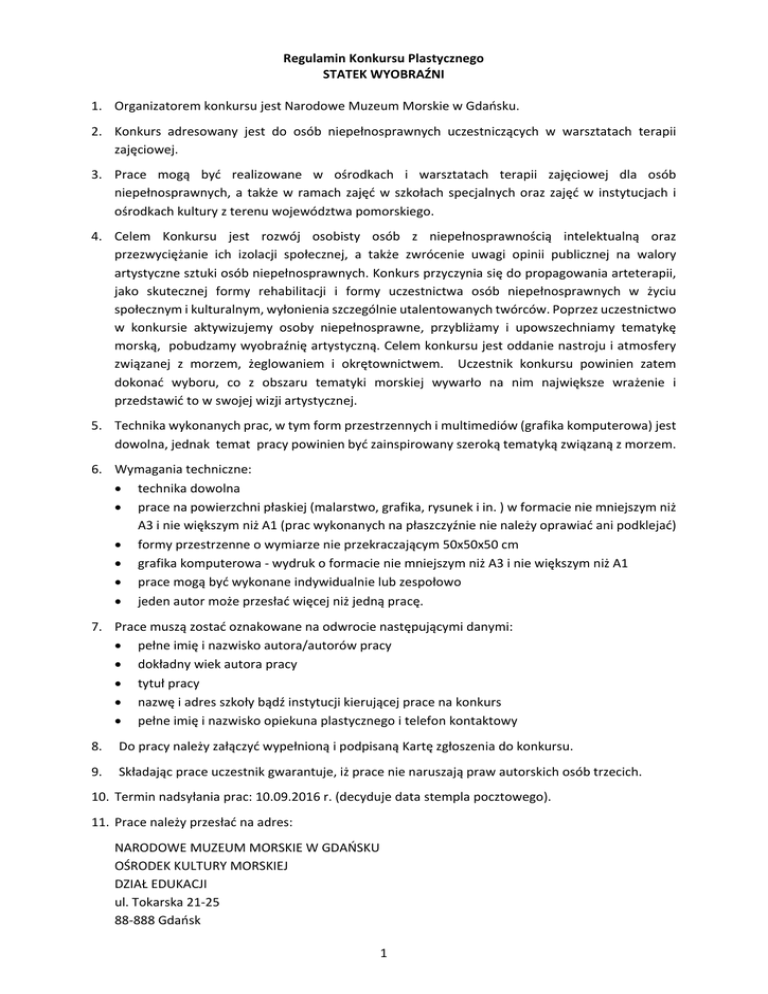 Regulaminem Konkursu - Narodowe Muzeum Morskie w Gdańsku