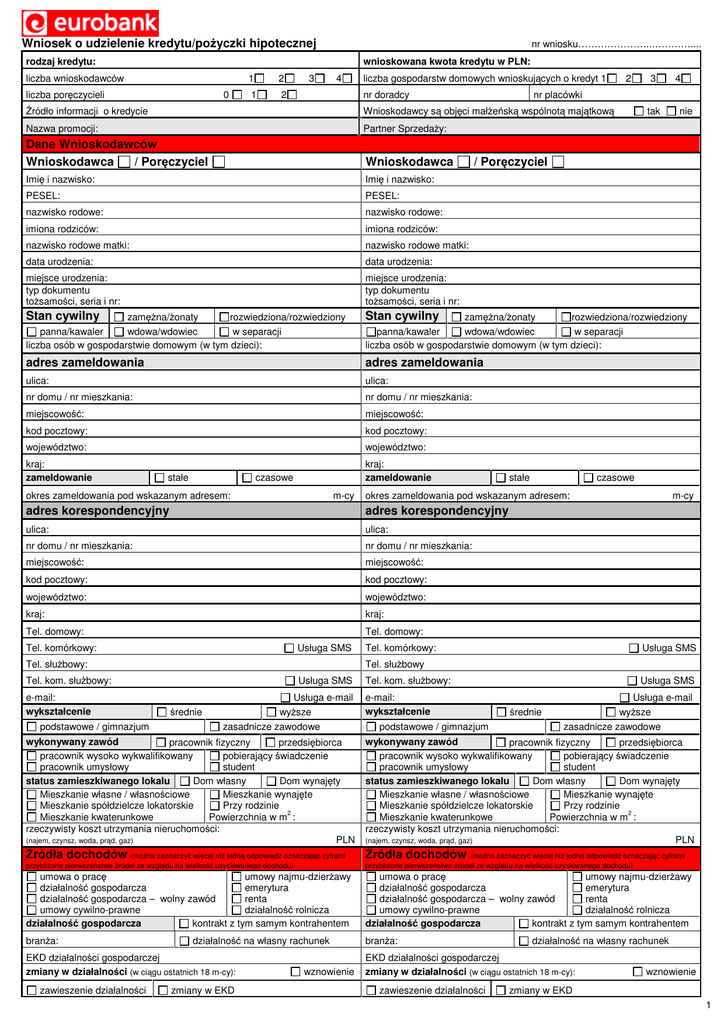 Wniosek o udzielenie kredytu/pożyczki hipotecznej