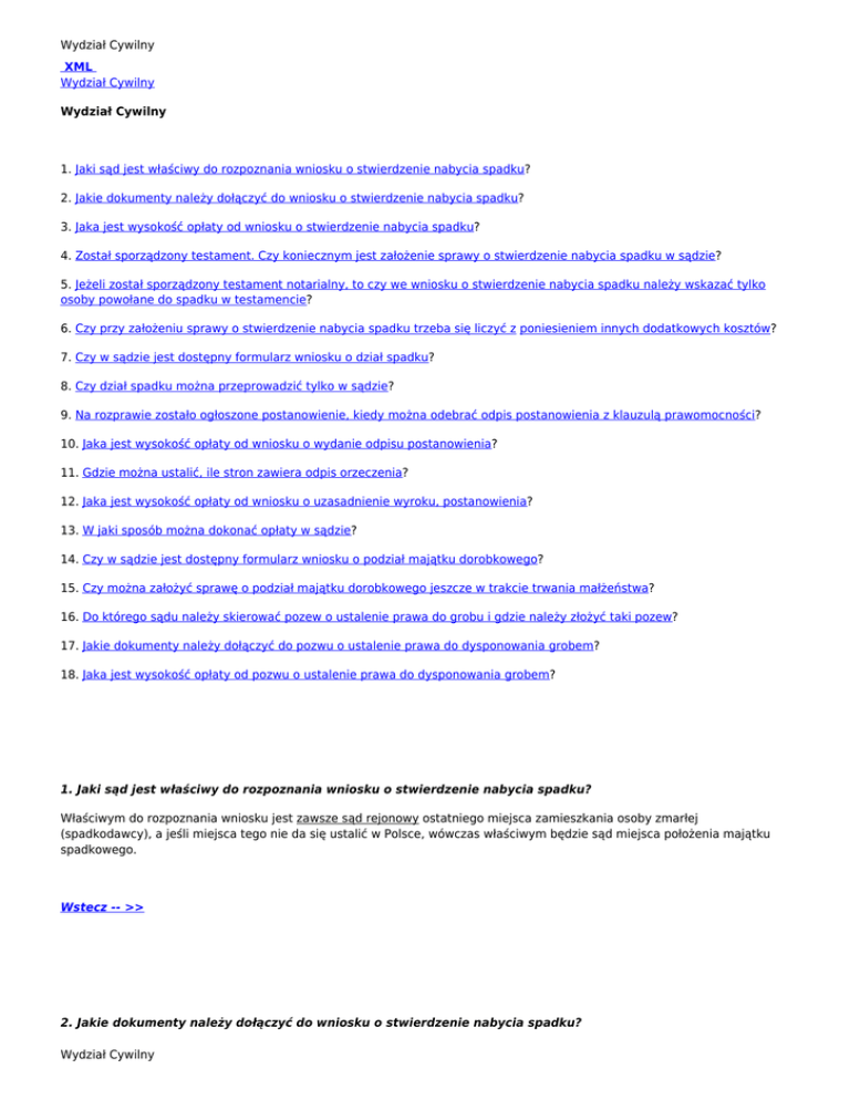 Wydział Cywilny Wydział Cywilny XML Wydział Cywilny Wydział
