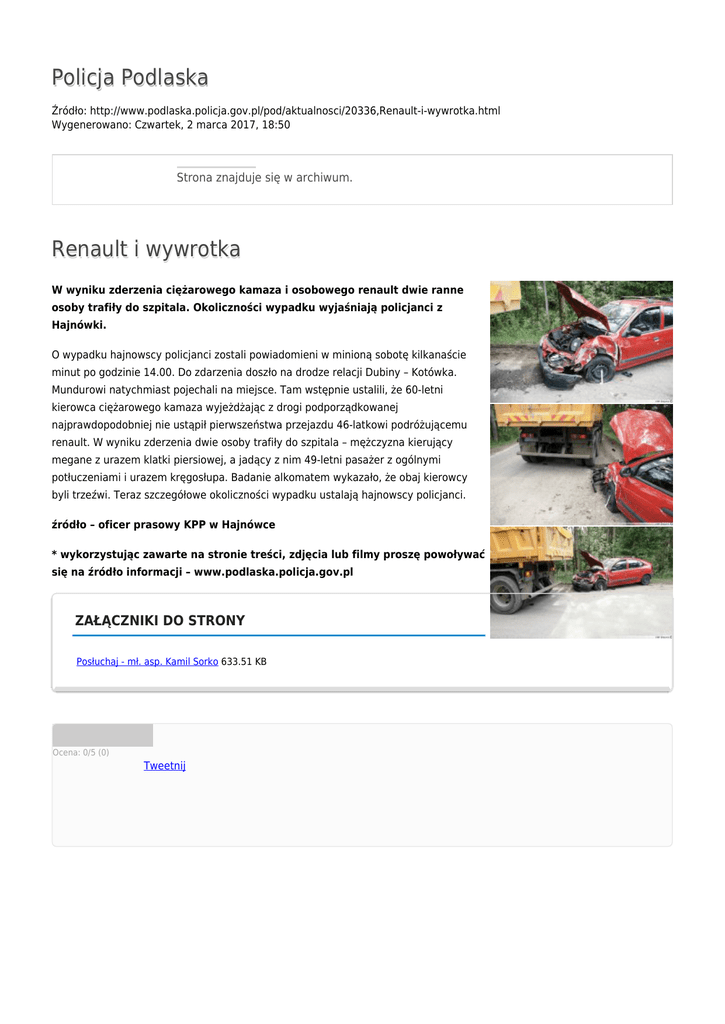 Policja Podlaska Renault i wywrotka