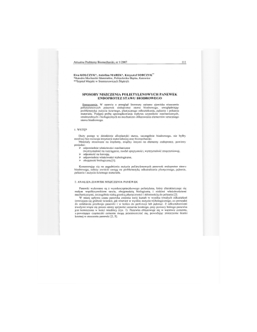 Aktualne Problemy Biomechaniki, nr 1/2007 111 Ewa K O L C Z Y K * , Anżelina M A R E K * , Krzysztof S O B C Z Y K " * Katedra Mechaniki Materiałów, Politechnika Śląska, Katowice **Szpital Miejski w Siemianowicach Śląskich SPOSOBY NISZCZENIA POLIETYLENOWYCH PANEWEK ENDOPROTEZ STAWU BIODROWEGO Streszczenie. W oparciu o przegląd literatury opisano zjawiska niszczenia polietylenowych panewek endoprotez stawu biodrowego, uwzględniając problematykę zużycia ściernego, plastycznego odkształcenia, pękania i pełzania materiału. Podjęto próbę uporządkowania wpływu czynników mechanicznych, strukturalnych i biologicznych na mechanizm obluzowania elementów sztucznego stawu biodrowego. ł. W S T Ę P Duży postęp w dziedzinie alloplastyki stawu, szczególnie biodrowego, nie byłby możliwy bez rozwoju inżynierii materiałowej oraz biomechaniki. Materiały stosowane na implanty, między innymi na elementy endoprotez, powinny posiadać: > odpowiednie właściwości mechaniczne (wytrzymałość na rozciąganie, moduł sprężystości, wytrzymałość zmęczeniową), > odporność na korozję, > odpowiednie właściwości trybologiczne, obojętność biologiczną [1]. Koncentrując się na zagadnieniu zużycia polietylenowych panewek endoprotez stawu biodrowego, należy zwrócić uwagę na problematykę odkształcania plastycznego, pękania, pełzania i zużycia ściernego materiału. 2. ANALIZA Z J A W I S K NISZCZENIA P A N E W E K Panewki wykonane są z wysokocząsteczkowego polietylenu, który charakteryzuje się małym współczynnikiem tarcia, obojętnością biologiczną i niskimi właściwościami mechanicznymi, szczególnie niską granicą plastyczności i skłonnością do pełzania [2]. W miarę upływu czasu panewka zmienia swój kształt w wyniku trwałych odkształceń (zmniejsza się grubość ścianki), jak również w wyniku zużycia trybologicznego, co prowadzi do osłabienia przekroju panewki i w końcu do perforacji lub pęknięć. Z odkształceniami trwałymi wiąże się proces utraty spójności cementu kostnego, przy pomocy którego panewka jest kotwiczona w kości miednicy (rys. 1). Panewka obluzowuje się w warstwie cementu, a powstające cząsteczki cementu m o g ą przemieszczać się, powodując zniszczenie tkanki kostnej w otoczeniu panewki [2, 3]. 26 L. Kiersnowski HNHMHI Rys. 1. Polietylenowa panewka z fragmentami cementu kostnego po 17-letnim okresie użytkowaniaz widocznymi efektami zużycia trybologicznego, odkształcenia plastycznego i pękania Na mechanizm obluzowania elementów sztucznego stawu biodrowego m a j ą wpływ czynniki: mechaniczne, strukturalne i biologiczne. Oddziaływanie na powierzchniach elementów stawu biodrowego zmieniających się cyklicznie naprężeń kontaktowych może prowadzić do pittingu, delaminacji i zmian krystalicznych polimeru. W rezultacie obce ciała prowadzą do osteolizy, resorbcji kości i zniszczenia implantu oraz wewnętrznego obluzowania [4]. Do podstawowych mechanizmów zniszczenia trybologicznego zalicza się zużycie abrazyjne, adhezyjne i zmęczeniowe. Powierzchnia po procesie zużycia posiada regularne fale [5], Zarówno zużycie abrazyjne, jak i adhezyjne może prowadzić do wysokiego stopnia zużycia panewek z wysokocząsteczkowego polietylenu U H M W P E [6], Jedną z metod, która prowadzi do zmniejszenia dużych odkształceń plastycznych powierzchni silnie usieciowanego materiału jest powstrzymanie możliwości poruszania się łańcuchów i ich reorientację, a tym samym zmniejszenie zużycia panewki. Można poprawić odporność na zużycie panewek poprzez zastosowanie promieniowania jonizującego. Stopień poprawy jest tym większy, im większa jest dawka promieniowania. Krystaliczność polimeru spada ze wzrostem dawki promieniowania gamma. Zaobserwowano, że szczątki zużycia były mniejsze dla XLPE niż dla U H M W P E . Elementami zużycia U H M W P E są fibryle i części zaglomeryzowane [4, 6, 7], Na styku polimer-metal, tworzywo doznaje odkształceń pod wpływem wysokich obciążeń. W wyniku tego panewka może zmienić kształt i spowodować obluzowanie całej endoprotezy. Konsekwencją zużycia trybologicznego endoprotezy z panewką polietylenową przy występowaniu par trących: • polietylen - kość, • metal - polietylen. • metal - kość, są następujące produkty zużycia: mikrowykruszenia kości, metalu, jak i polietylenu, a także odkształcenie polietylenu [9], Możliwości stosowania neuroprotez w uszkodzeniach układu nerwowego 113 W celu zwiększenia stabilności podwójnej panewki metalowo-polietylenowej można użyć śrub służących do zamocowania półkolistego, porowatego elementu panewki. Jednak powoduje on zużycie ścierne na połączeniu śrub i metalowej czapeczki, zużycie polietylenu w otworach śrub z niszczeniem wzdłuż rozstawu śrub i penetrację śrub w strukturę neuronaczyniową [11], Na obluzowanie panewek ma również wpływ stan strukturalny polimeru, który ze zwiększeniem okresu użytkowania implantu ulega zmianie. Polietylen jest liniowym polimerem zawierającym kryształy lamelarne i między nimi strefę amorficzną [5]. Wraz ze wzrostem okresu użytkowania implantu stopień krystaliczności polietylenu wzrasta, gdyż ulega on w organizmie człowieka utlenieniu. Powoduje to większą kruchość materiału i z tego powodu szybsze zużycie mechaniczne, połączone ze złamaniem i rozkawałkowaniem elementu. Zmiana struktury krystalicznej polietylenu następuje pod wpływem działania czynników biologicznych [3, 8]. Do czynników inicjujących mechaniczne uszkodzenie endoprotezy zalicza się uraz. działanie wibracyjne, wadliwe-koślawe lub niecentralne umieszczenie panewki, zbyt płytkie zaczepy cementu, nierówność dna kostnego i niedoskonałą technikę operacyjną, jak również stosowanie za dużych o 2-3 mm elementów [10, 1 lj. Inicjowanie pęknięć wiąże się z występowaniem obszarów cyklicznie obciążonych [12], Pę