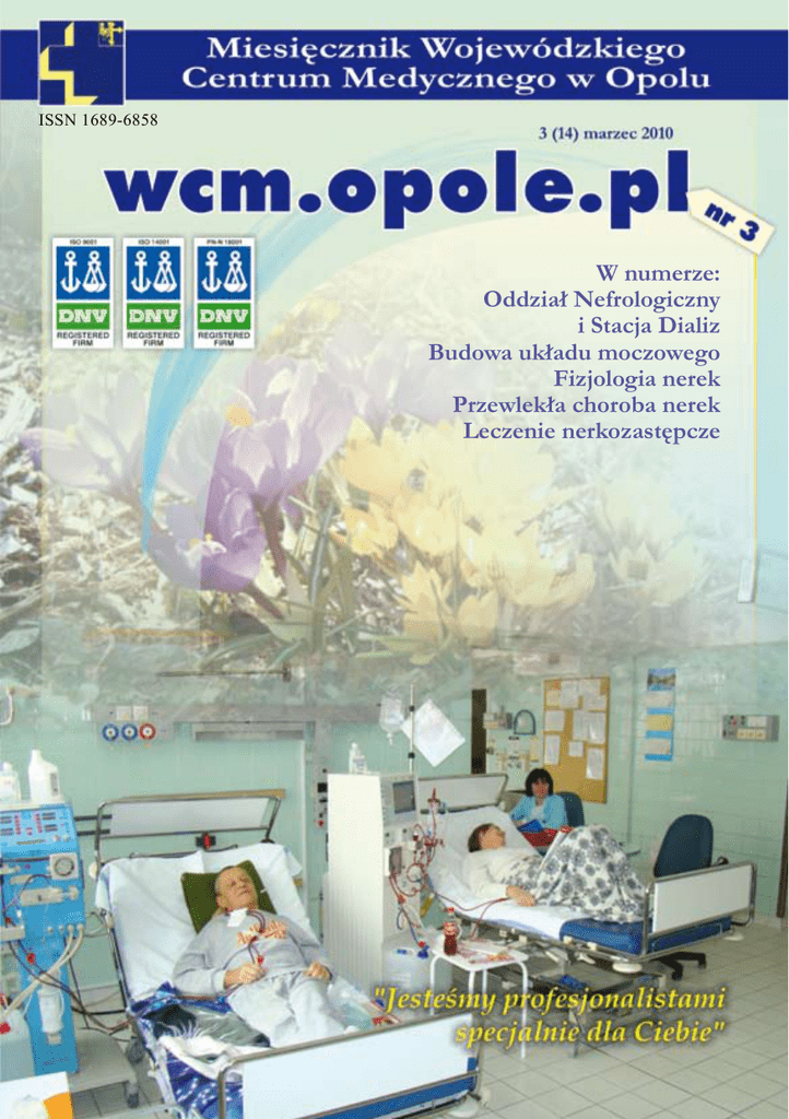 ISSN 1689-6858 W numerze: Oddział Nefrologiczny i Stacja Dializ Budowa układu moczowego Fizjologia nerek Przewlekła choroba nerek Leczenie nerkozastępcze wcm.opole.pl - marzec 2010 wcm.opole.pl - marzec 2010 ODDZIAŁ NEFROLOGICZNY I STACJA DIALIZ Wspomnienia dr n. med. Ryszarda Kwiecińskiego twórcy opolskiej nefrologii …„Był rok 1972. Za sprawą Opolanina prof. Franciszka Kokota przyznano nam w lutym cztery aparaty do hemodializy pozaustrojowej, popularnie zwane „sztucznymi nerkami”. Rozpoczęliśmy gorączkowe prace adaptacyjne w części Oddziału Chorób Zakaźnych. Otwarcia Oddziału Nefrologicznego i skromnej Stacji Dializ dokonano 28 października tego samego roku. Radość trudna do opisania, tak wśród personelu jak i dyrekcji Szpitala Wojewódzkiego, serdeczność i życzliwość zaproszonych gości. Metrykalnie byliśmy rówieśnikami dużej Łodzi, wyprzedzając ośrodki akademickie Szczecina i Białegostoku. Nie zapomnę gratulacji i ciepłych życzeń dr Pośpieszalskiej - dyrektora Szpitala Pediatrycznego. Życzyła: „oby się Wam ta pierwsza dializa udała”. I pomyśleć, że dzisiaj w Opolu w dwóch stacjach dializ, wykonuje się 25 000 dializ rocznie… …Rozpoczęliśmy pracę i pilne szkolenie personelu. Przecież nikt poza mną i pielęgniarką oddziałową - Anią Nowakowską (obecnie Karczmarek), nie widział „sztucznej nerki”, ale proszę wierzyć, że entuzjazm i ambicja zespołu przeszły moje oczekiwania. Nie będzie w mojej wypowiedzi dużo cyfr, ale data 6.12.1972, jest chyba najważniejsza. W asyście Ani, po założeniu przetoki Scribnera, wykonaliśmy u naszej chorej pierwszą hemodializę pozaustrojową. Pacjentka była drobną, można powiedzieć z postury dziewczynka, 20 letnią mieszkanką Olesna. Żyła mimo zerowej funkcji nerek dziewięć miesięcy i uważaliśmy to wówczas za sukces. Tymczasem, obecne wyniki terapii nerkozastępczej są nieporównywalne. Najdłużej żyjący nasz pacjent, przeżył na terapii nerkozastępczej 30 lat. Mamy nowoczesną aparaturę i leki, jak np. erytropoetynę o której wtedy nawet nie myśleliśmy... …Oddział Nefrologiczny rozwijał się nie tylko intelektualnie (regularne szkolenia, konferencje w ramach opolskiego Oddziału Towarzystwa Internistów Polskich, zjazdy krajowe i zagraniczne, specjalizacje z interny, a potem nefrologii), ale też obszarowo, zwiększając znacznie powierzchnię, przenosząc się z ul. Kośnego na ul. Katowicką. W tym wszystkim pomagał mi dzielnie mój zastępca dr Henryk Żygadło. Przez 23 lata pracowaliśmy razem, aż powstała nowoczesna nefrologia przy Wojewódzkim Centrum Medycznym. Tej nefrologii w pierwotwcm.opole.pl - marzec 2010 nych planach miało nie być, ale dzięki zrozumieniu potrzeb i życzliwości władz jest i jest bardzo potrzebna... ... Niejednokrotnie zastanawiałem się, czy mój wybór specjalności był słuszny, i uważam, że absolutnie tak. Tworzyliśmy nowoczesną dyscyplinę, którą kiedyś nazywano „nekrologią”. Satysfakcja z życia zawodowego niesamowita. Dzisiaj nikomu na Opolszczyźnie nie odmawia się leczenia nerkozastępczego. Dbaliśmy o chorych i siebie. Zgromadziłem dziesiątki gratulacji, podziękowań w prasie, koncertach życzeń, telegramach, listach, przechowuję je wszystkie i przekażę mojemu następcy dr Grażynie Bogdanowicz… … A dobrze dla siebie, to też dobrze dla chorych - siedmioro specjalistów nefrologii (po II stopniu z chorób wewnętrznych), cztery tytuły doktora nauk medycznych. Nie jestem w stanie wymienić wygłoszonych i opublikowanych prac, sam mam ich na koncie 40. Nie wymieniam więc nazwisk, bo byłaby to bardzo długa lista, nie mógłbym nikogo pominąć, ale wszystkim moim współpracownikom tą drogą serdecznie dziękuję, bez Was ta piękna przygoda nefrologiczna byłaby niemożliwa. Już na zakończenie, praca zawodowa musi mieć też swoje święta. Były nimi Jubileusz 20, 25 i 30- lecia Oddziału Nefrologii, dwie zorganizowane przez nas ogólnokrajowe Konferencje Nefrologiczne oraz niesłychanie miłe imprezy integracyjne dla całego zespołu z pieczeniem ziemniaków włącznie”… Od stycznia 2006 roku, oddziałem kieruje dr n. med. Grażyna Bogdanowicz, specjalista chorób wewnętrznych i nefrologii. Urodzona 6.02.1959 w Płocku. W latach 1977-1983 studiowała na Wydziale Lekarskim Akademii Medycznej we Wrocławiu. Od początku życia zawodowego związana z Oddziałem Nefrologii i Stacją Dializ Wojewódzkiego Szpitala Zespolonego w Opolu. W oddziale tym, odbyła staż podyplomowy w zakresie chorób wewnętrznych, następnie w latach 1984-1987 pracowała jako młodszy asystent. W roku 1987 pod kierunkiem dr Henryka Żygadły, uzyskała dyplom Iº specjalizacji w zakresie chorób wewnętrznych. W 1993 roku pod kierunkiem dr n. med. Ryszarda Kwiecińskiego, uzyskała IIº specjalizacji w zakresie chorób wewnętrznych. Do stycznia 1998 roku, pracowała jako starszy asystent Oddziału Nefrologii i Stacji Dializ Wojewódzkiego Szpitala Zespolonego w Opolu. Od stycznia 1998 r., po przeniesieniu Oddziału Nefrologii i powstaniu nowej Stacji Dializ w Wojewódzkim Centrum Medycznym w Opolu, pełniła funkcję zastępcy ordynatora. W październiku 1998 otrzymała stopień naukowy doktora nauk medycznych na podstawie rozprawy doktorskiej pt.: „Wpływ użytej błony dializacyjnej na niektóre parametry układu krzepnięcia i fibrynolizy u chorych na przewlekłą niewydolność nerek leczonych powtarzalnymi hemodializami”, a w grudniu 1998 uzyskała tytuł specjalisty w dziedzinie nefrologii. W latach 1999-2008 zajmowała stanowisko adiunkta Wydziału Wychowania Fizycznego i Fizjoterapii Politechniki Opolskiej. Od roku 2006 pełni funkcję konsultanta wojewódzkiego w dziedzinie nefrologii dla województwa opolskiego. Należy do Towarzystwa Internistów Polskich, w ostatniej kadencji pełniła wcm.opole.pl - marzec 2010 funkcję skarbnika Opolskiego Oddziału Towarzystwa Int