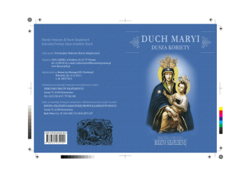 Ofiarowanie się Panu Jezusowi przez ręce Maryi1 O! Mądrości Odwieczna, Jezu, prawdziwy BoŜe i Człowieku, Synu jedyny Ojca Przedwiecznego i Maryi zawsze Dziewicy, cześć Ci oddaję najgłębszą w chwale Ojca Twojego i w dziewiczym łonie Maryi w czasie Twojego Wcielenia. Dzięki Ci składam, Ŝeś wyniszczył Samego Siebie przyjąwszy postać sługi, aŜeby mnie wyzwolić z okrutnego niewolnictwa szatana. Chwałę Ci oddaję i wielbię Cię, Ŝeś raczył poddać się Maryi Matce Twojej we wszystkim, aŜeby przez Nią uczynić mnie Twoim wiernym niewolnikiem. Lecz niestety! Okazałem się niewdzięcznym i niewiernym, nie dotrzymałem Ci przyrzeczeń, które tak uroczyście uczyniłem Ci przy Chrzcie moim. Nie spełniłem moich zobowiązań i niegodny jestem nazwy Twojego dziecka i Twojego niewolnika. Gdy więc tak wiele rzeczy we mnie, zasługuje jedynie na odrzucenie i na gniew Twój, przeto nie śmiem sam zbliŜyć się do Twojego Przenajświętszego Majestatu. Uciekam się więc do pośrednictwa Twojej Najświętszej Matki, którą mi dałeś za Matkę i Pośredniczkę, aby mi uprosiła skruchę za grzechy moje i ich odpuszczenie oraz łaskę prawdziwej Mądrości. Pozdrawiam Cię Matko Niepokalana, Ŝywy przybytku Syna BoŜego, w którym ukryta Mądrość Przedwieczna chce być czczoną przez Aniołów i ludzi. Pozdrawiam Cię Królowo nieba i ziemi! Pozdrawiam Cię bezpieczna ucieczko grzeszników, której miłosierdzia nikomu nie brakuje! Wysłuchaj mojego pragnienia Boskiej mądrości i przyjmij łaskawie chęci i ofiarowanie moje! Ja …, grzesznik wiarołomny, odnawiam i składam dziś na ręce Twoje przyrzeczenia Chrztu mojego. Wyrzekam się na zawsze szatana, pychy i spraw jego, a cały oddaję się Panu Jezusowi, Przedwiecznej Mądrości Wcielonej, abym mógł nieść krzyŜ mój za Nim kaŜdego dnia Ŝycia mojego i był Mu wierniejszym, aniŜeli nim byłem dotąd. Dziś, wobec całego dworu niebieskiego, obieram Ciebie sobie za Matkę i Władczynią Ŝycia mego. Pragnę być Twoim sługą i niewolnikiem! Poświęcam Tobie ciało moje i duszę moją, dobra moje wewnętrzne i zewnętrzne, i wartość moich dobrych czynów przeszłych, teraźniejszych i przyszłych! Pozostawiam Ci wszelkie i zupełne prawo rozporządzania mną samym i wszystkim, co do mnie naleŜy – bez wyjątku – według Twojego upodobania, na większą chwałę Boga w czasie i wieczności. Przyjmij Panno łaskawa, tę lichą ofiarę Ŝycia mojego, słuŜbę lichego robaczka i nędznego grzesznika, na podziękowanie za łaski i przywileje, którymi Trójca Przenajświętsza Cię obdarzyła. Przyrzekam Ci odtąd, jako Twój prawdziwy niewolnik, starać się o cześć Twoją i być Ci we wszystkim posłusznym. O Matko miłosierdzia, wyświadcz mi łaskę otrzymania prawdziwej Mądrości Boskiej i odnalezienia się tym samym w liczbie tych, których miłujesz, których nauczasz, których prowadzisz, których Ŝywisz i wspierasz, jako dzieci i niewolników Twoich. O Panno wierna, uczyń mnie we wszystkim tak wiernym i doskonałym uczniem, naśladowcą i niewolnikiem Syna Twojego, Boskiej Mądrości wcielonej, aŜebym za Twoim wstawiennictwem i za Twoim przykładem doszedł na ziemi do miary pełni Chrystusa (Ef 4,13) i Jego chwały w niebie. Amen. ___________________________ 1 ZłoŜone przez bł. o. Alfonsa Marię od Ducha Świętego OCD (Mazurka) w Czernej, w wigilię uroczystości Matki Boskiej RóŜańcowej (2.10.1909 r.); Por. Głos Karmelu, Nr 5, wrzesień-październik 2013, s. 27-28. DUCH MARYI DUSZA KOBIETY Materiały formacyjne dla Bractw Szkaplerznych Krakowskiej Prowincji Zakonu Karmelitów Bosych [2] Święta BoŜa Rodzicielko, Chwało Góry Karmel, zechciej odzianych Twoją Szatą przyodziać cnotami Twoimi i zachowaj ich zawsze od wszelkich niebezpieczeństw duszy i ciała. Amen. SPIS TREŚCI Podziękowanie i wprowadzenie ......................................................... 3 Konferencje formacyjne: • Miesiąc I............................................................................................................ 7 • Miesiąc II ........................................................................................................ 14 • Miesiąc III ....................................................................................................... 23 Z Ŝycia naszych Bractw • Czerna – polska Góra Karmel (20.07.2013) .................................................... 41 • Apostolstwo szkaplerza na pielgrzymce warszawskiej (6-15.08.2013) ........... 45 • Erygowanie bractwa w Mierzynie ................................................................... 47 • Modlitwa we wspólnocie szkaplerznej ............................................................ 57 • Świadectwa łask i darów Matki BoŜej............................................................. 60 Nasze apostolstwo! • Ciche apostolstwo szkaplerzne ........................................................................ 66 • Uwielbiajmy Boskie Dzieciątko Jezus............................................................. 67 • „Dzieciątko Jezus w Karmelu” – sesja naukowa w Krakowie ......................... 68 • Szata dla Maryi z 52 kawałków!...................................................................... 70 • Wizerunki Matki BoŜej Szkaplerznej .............................................................. 72 • Rekolekcje dla Animatorów Bractw Szkaplerznych........................................ 76 • Rekolekcje dla wszystkich, którzy noszą szkaplerz św. lub pragną go przyjąć ..... 79 • Gdzie Prawdy szukać?..................................................................................... 80 • Modlitwa św. Faustyny do Maryi o czystość................................................... 80 ISBN 978-83-64430-99-2 PODZIĘKOWANIE I WPROWADZENIE Niech w nas wszystkich Ŝyje duch Maryi! Drodzy Moderatorzy i Animatorzy Bractw Szkaplerznych! Drodzy Bracia i Si