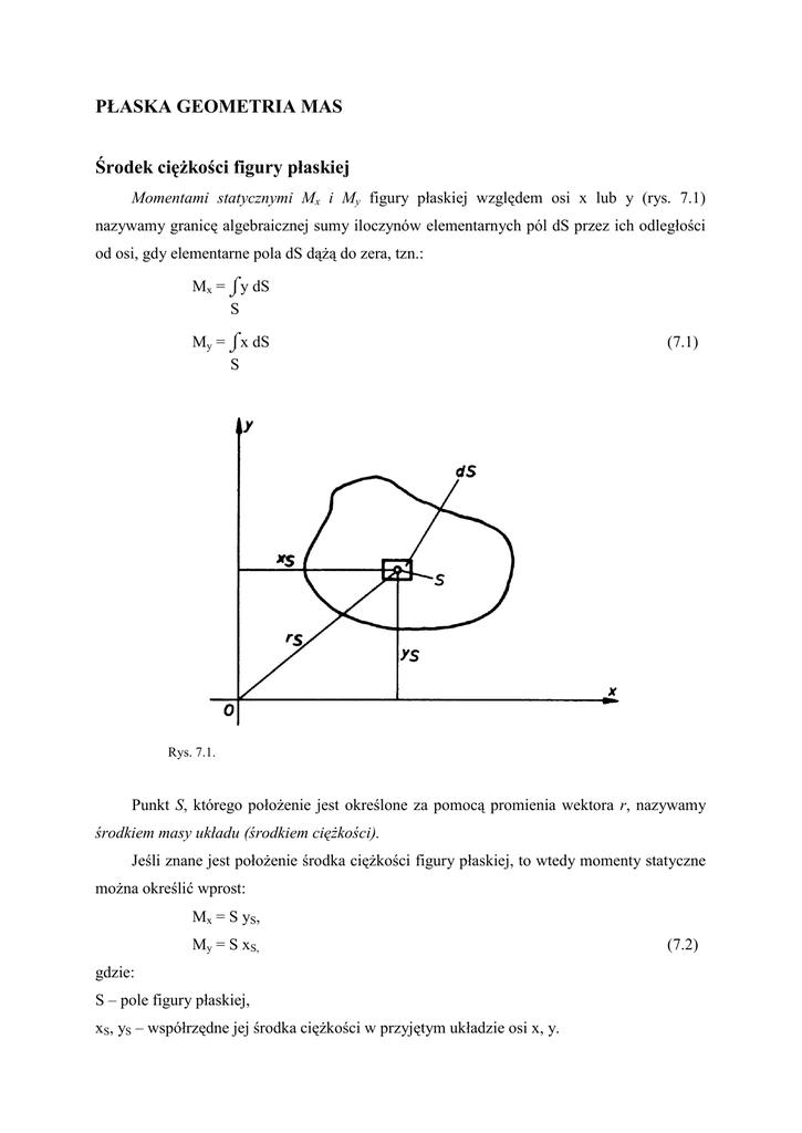 PŁASKA GEOMETRIA MAS Środek ciężkości figury płaskiej