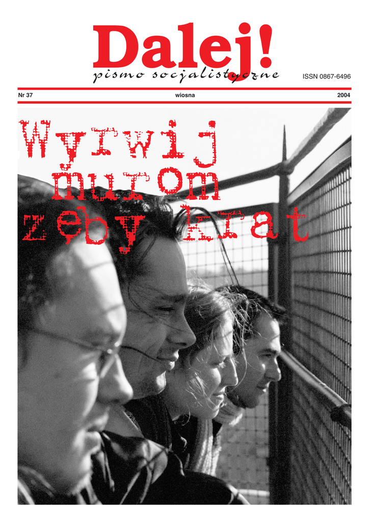 Dalej! pismo socjalistyczne Nr 37 ISSN 0867-6496 wiosna Wyrwij murom ze,by krat 2004 2 Czerwona kartka Przela∏o si´! JeÊli ktoÊ mia∏ jeszcze z∏udzenia co do lewicowoÊci SLD i UP, to powstanie SdPl, okolicznoÊci z tym zwiàzane i wymuszone nimi deklaracje polityczne liderów wspomnianych partii – ostatecznie wyjaÊni∏y b∏àdzàcym, jak z tà „lewicowoÊcià” w wypadku oficjalnych, pro-systemowych, koncesjonowanych partii lewicowych w Polsce sprawy stojà. WiernoÊç strukturom, czy zasadom? Leszek Miller chwali niegdysiejszà postaw´ pos∏ów SLD, którzy potrafili, choçby i zgrzytajàc przy tym z´bami, podnosiç równo r´ce podczas g∏osowaƒ nad ustawami, których ˝adnà miarà nie sposób pogodziç z lewicowym pos∏owaniem. Zw∏aszcza, ˝e w kampanii wyborczej gromko zapewniali, ˝e serce majà po lewej stronie. Pal diabli jednak serce i przekonania. Stajàc przed wyborem: wiernoÊç strukturom, czy wiernoÊç zasadom – zawsze wybierali wiernoÊç strukturom. WiernoÊç kierownictwu. Nie by∏o to trudne, bo o zasadach, o tym, co oznacza lewicowoÊç, choçby i w n´dznym, SLD-owsko-socjaldemokratycznym wydaniu, w SLD nie rozmawiano. OgólnikowoÊç ideowych deklaracji jednym pozwala∏a takich dyskusji szcz´Êliwie uniknàç, innym – owà ogólnikowoÊç t∏umaczyç sobie na w∏asny sposób, uspokajaç sumienie. Jesienne ró˝e Ca∏à n´dz´ ideowego zaplecza SLD ujawni∏ w pe∏ni dopiero Marek Borowski. Ju˝ po roz∏amie, okaza∏ si´ najbardziej zdeklarowanym zwolennikiem zarówno planu Hausnera, jak i napaÊci na Irak. Grabie˝y najubo˝szych na rzecz najzamo˝niejszych, wspartej zapewnieniami, ˝e gdy ci ostatni ju˝ si´ utuczà – zechcà w koƒcu poratowaç biednych. Czy te˝ daç im jakieÊ zaj´cie, op∏acane wedle uznania dobrodziejów. Bo kodeks pracy i podatki rzàdzàca „lewica” przeg∏osowa∏a ku upodobaniu „rynków finansowych”. Có˝, jeÊli polityka stroni od ingerowania w owe tajemnicze „rynki”, to rynkowe tuzy podporzàdkowujà sobie polityk´. ˚ó∏ta, przywi´d∏a ró˝a w logo SdPl ma odcieƒ irackiego piasku. Jest zapewne symbolem „sojuszniczych zobowiàzaƒ”, deklarowanych przez Borowskiego, wiernoÊci – tym razem zasadom: jesteÊmy z tymi, którzy lepiej p∏acà i z tymi, którzy sà akurat silniejsi. Po kupiecku. Tak wi´c jest to lewica herbu „górà nasi!”. JeÊli „nasi” sà akurat górà… Sposób socjaldemokratów na prawic´ Sypie si´ te˝ Unia Pracy. I nie dziwota, bo pracy – tak˝e za sprawà tej˝e Unii – jest w Polsce coraz mniej. Niezrównany w swej pokr´tnoÊci Na∏´cz da∏ sygna∏ – czas si´ przesiadaç na nowà, lepszà platform´. SdPl z pewnoÊcià nie b´dzie nak∏ania∏a do pierwszomajowych manifestacji. To powa˝na lewica, tak prawicowa, ˝e prawica jest zmuszona krytykowaç jà „z lewa”. Innego sposobu nie znajduje i sama przez to wchodzi na „spalone”. Giertych pierwszy si´ na to z∏apa∏ i ju˝ gromi imperialistyczne zap´dy sojuszników Busha w telewizyjnej reklamówce. Jak widaç, Machiavelli przy Borowskim to ma∏y pikuÊ. ˚ó∏ta ró˝a SdPl z czasem przybierze kolor niebieski. Bàdê inny – byle nie ska˝ony jakàkolwiek czerwienià. Post-PZPR-owska „lewica” znalaz∏a w koƒcu sposób na kolegów z prawicy. Wyprze ich z prawicowych pozycji, przelicytuje, a Bush i jemu podobni upewnià si´, ˝e nie ma to jak dobra stalinowska szko∏a – nikt tak nie potrafi przykrywaç reakcyjnych numerów lewicowymi sloganami. Niech si´ zachodnia socjaldemokracja uczy wschodnioeuropejskiej prostytucji! Jest na nià popyt, sà pieniàdze. Robinhoodyzm na opak To, ˝e „lewicowe” partie trzymajàce w∏adz´ popar∏y najazd Iraku – nie by∏o przypadkowe, ani wymuszone „si∏à wy˝szà”, wynikajàcà z jakichÊ tajemniczych „zobowiàzaƒ sojuszniczych”. Tajemniczy „sojusz” by∏by przecie˝ z gruntu przest´pczy nawet z punktu widzenia prawa mi´dzynarodowego. W koƒcu ani ONZ, humanitarny or´downik interesów wielkich Êwiatowych korporacji, ani nawet NATO – ˝andarm stojàcy na stra˝y imperialistycznych interesów Êwiatowej bur˝uazji – nie da∏y dotàd nawet listka figowego na przykrycie dokonanego gwa∏tu. Wulgarne uzasadnianie wspó∏udzia∏u w napaÊci na Irak ropà, która Polsce si´ z tytu∏u tej zbrodni nale˝y, przez ministra spraw zagranicznych „lewicowego” rzàdu – mog∏o szokowaç. Mo˝na te˝ by∏o pomawiaç Cimoszewicza o g∏upot´. Nie by∏a to jednak g∏upota, lecz rzadka wÊród politykierów tego autoramentu szczeroÊç. Wyprzedzajàca szczeroÊç. Bo panowie z SLD, grajàcy dotàd w tym kasynie kartami w ró˝nych odcieniach czerwieni, uznali ˝e czas licytowaç inny kolor, w który dotàd graç nie mogli. Sprytniejsi – w tym dawni koledzy partyjni – pierwsi te karty wytasowali. Szalbierze i renegaci Ogromny lewicowy potencja∏, lewicowy elektorat, dwukrotnie zawierzy∏ w wyborach szalbierzom, którzy z przyzwolenia „rynków finansowych” podj´li si´ w Polsce pacyfikacji lewicowych nastrojów. Nastrojów, które znalaz∏y najpe∏niejszy od wojny wyraz w „SolidarnoÊci” lat 80. Trzeba by∏o stanu wojennego, prania mózgu przez koÊció∏, Magdalenki i okràg∏osto∏owego blatu, aby sprowadziç sierpniowy zryw na manowce. Odwróciç kierunek spo∏ecznych ˝àdaƒ o 180 stopni. Najlepszà gwarancj´ „sojuszniczej wiernoÊci” porzàdkom opartym na kapitalistycznym wyzysku dawali jednak tak zwani „post-komuniÊci”. Ci, co byli ju˝ „post”, zanim komunistami si´ nazwali. Gwarancja polega∏a na tym, ˝e nie mo˝na byç „troch´” renegatem, podobnie jak nie mo˝na byç „troch´” w cià˝y. Renegatem si´ jest do koƒca. W najtrudniejszych dla „transformacji” momentach luminarze z by∏ego PZPR i satelickich formacji najgor´cej i najskuteczniej wspierali proces wyw∏aszczania spo∏eczeƒ- stwa z ca∏ego dorobku minionego pó∏wiecza