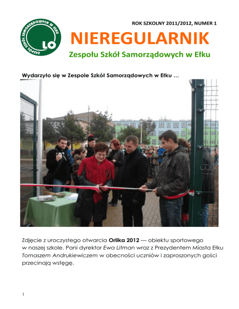 ROK SZKOLNY 2011/2012, NUMER 1 NIEREGULARNIK Zespołu Szkół Samorządowych w Ełku Wydarzyło się w Zespole Szkół Samorządowych w Ełku … Zdjęcie z uroczystego otwarcia Orlika 2012 — obiektu sportowego w naszej szkole. Pani dyrektor Ewa Litman wraz z Prezydentem Miasta Ełku Tomaszem Andrukiewiczem w obecności uczniów i zaproszonych gości przecinają wstęgę. 1 W numerze: 1.Wywiad z Panem Jarosławem Andrzejewskim 2. ,,Niewyjaśniona Historia” - opowiadanie 3. Sprawozdanie z pielgrzymki maturzystów 4. Początek roku szkolnego — witamy pierwszoklasistów 5. ,,Otrzęsiny” klas pierwszych 6. Budowa obiektu sportowego ,,Orlik 2012” 7. Historia braci Bunker, braci syjamskich 8. Wiersz Redaktorzy: Paula Konopka, Martyna Siemieniaka, Żaneta Kumkowska, Emilia Kadłubowska, Paulina Klepadło, Paulina Witaszczyk Redaktorzy techniczni: Jakub Sierzputowski, Mateusz Romatowski Koniec A potem martwe rzeki płynąć będą złotym szlakiem, ptaki bawić będą ssaki trelem, żałobnym zaś znakiem będą szare maki wykrywające swój kolor w niebyt. Ann 2 Wywiad z Panem Jarosławem Andrzejewskim Z myślą o osobach interesujących się sportem postanowiliśmy przeprowadzić wywiad z Panem Jarosławem Andrzejewskim uczącym w naszej szkole wychowania fizycznego. Gazetka: Jakie drużyny sportowe trenuje Pan w tym roku? Zdjęcie z meczu piłki nożnej rozegranego 22 listopada 2011 r. na otwarcie Orlika 2012. Na zdjęciu Pan Jarosław Andrzejewski (z lewej) i Karol Karwowski (klasa 2A) Pan Jarosław Andrzejewski: W tym roku założyłem sobie, że będę trenował dziewczyny oraz chłopców w piłce siatkowej. Gazetka: W jakie dni i o której godzinie odbywają sie treningi? Pan Jarosław Andrzejewski: Dziewczyny ćwiczą w poniedziałki, wtorki i czwartki o godzinie 16.00. Chłopcy w te same dni jednak z jedną różnicą — przychodzą o półtorej godziny wcześniej. Gazetka: Kiedy odbędą sie pierwsze zawody sportowe? Pan Jarosław Andrzejewski: Pierwsze zawody, które odbędą się w naszej szkole, planowane są w listopadzie w dyscyplinach takich jak: piłka siatkowa i koszykówka dziewcząt i chłopców. Gazetka: Czy ma Pan wystarczająco dużo zawodników do grania? Pan Jarosław Andrzejewski: Zauważyłem, że wiele osób interesuje sie tą dyscyplina sportową i chętnych nie brakuje. Autor: Żaneta Kumkowska 3 Niewyjaśniona historia 24 listopada to dla mnie pamiętny dzień. Za kilka dni moja mama miała mieć urodziny. W domu była ciepła atmosfera. Mama krzątała się w kuchni przygotowując urodzinowe specjały. W całym domu rozchodził się zapach wanilii i cynamonu. Nie chcąc mamie przeszkadzać, ubrałam się i wyszłam na spacer: - Tylko nie zapomnij szalika - usłyszałam. - Dobrze, mamo. Zaraz włożę – odparłam. Jeszcze tylko zapnę się pod szyją, bo usłyszałam z okna, że wiatr urządza sobie wyścigi z liśćmi, które kradnie z drzew. Wezwałam windę. Kiedy czekałam, aż przyjedzie… Cóż to. Dziwne uczucie! Przecież nikogo nie ma. Po raz pierwszy miałam wrażenie, że ktoś za mną stoi i uważnie mi się przygląda. To niemożliwe. Obejrzałam się. Ściany klatki schodowej i nic więcej. Nikogo nie ma, co ja sobie wymyślam?! Po chwili winda zjawiła się. Otworzyłam drzwi i wcisnęłam „parter”. Na czwartym piętrze dosiadła się do mnie nasza zaprzyjaźniona sąsiadka. - Dobry wieczór- powiedziałam. - Dobry wieczór - odpowiedziała pani Kowalska - O tej porze na spacer? I do tego jeszcze w taką pogodę? Wiatr wieje jakby kogoś powiesili… Uważaj na siebie. - Cóż… Dziękuję za ostrzeżenie. Będę uważać – odrzekłam. Pani Kowalska tylko pokręciła głową, ale widać było, że nie podobała się jej moja postawa. Wyraźnie nie chciała bym wychodziła dziś z domu. 4 Park za domem przywitał mnie śniegiem z deszczem, który, miotany wiatrem, wściekle wdzierał się pod kurtkę i za wszelką cenę chciał zerwać kaptur z głowy. Wtedy pożałowałam, że nie włożyłam pod spodnie rajstop i nie zabrałam czapki - było przerażająco zimno. Zdecydowałam jednak, że skoro już się wybrałam, to już przejdę się trochę, ale wrócę do domu nieco szybciej niż zwykle. Nie będę w takim mrozie i wietrze nigdzie chodzić. Szłam parkową alejką omijając kałuże i błoto z rozjeżdżonego przez rowery żwiru wymieszanego z piaskiem. Byłam pewna, że nikogo oprócz mnie nie ma w okolicy, ale znów poczułam na sobie to dziwne spojrzenie. Teraz już miałam pewność, że ktoś może mi się przyglądać. Wszak za plecami nie miałam ściany, a wolną przestrzeń. Gwałtownie odwróciłam się, jednak zobaczyłam tylko parkujący w oddali samochód. Poszłam, więc dalej. Byłam dziwnie przerażona. Przygotowana byłam by w każdej chwili móc wezwać pomoc. Komórka w pogotowiu – 112. Może straż miejską wezwać? – Myślałam. Jednak nie było nikogo oprócz mnie. Kiedy mijałam te stare klony koło skweru, kątem oka dostrzegłam jakiś ruch. Zatrzymałam się i powoli odwracałam głowę w kierunku, gdzie dostrzegłam owo zawirowanie liści, które nie mogło być wywołane wiatrem. Nieomalże zemdlałam. Tuż przy mnie pojawił się jakby spod ziemi chłopczyk. Jego smutne oczy… Tak, miał nieobecne, patrzące w dal, ciemne oczy. Spojrzał na mnie. Po plecach przeszedł mi dreszcz. Mówił, mówił, ruszał ustami, lecz szalejący wiatr rozmywał słowa, które były tak ciche jak najdelikatniejszy szept. Rozejrzałam się w nadziei, że zobaczę jakiegoś przechodnia. Byłam przerażona. Odwróci- 5 łam się w stronę, gdzie była ta postać – jednak nikogo nie dostrzegłam. Obłok mgły rozmył się w powietrzu. Tak naprawdę następne, co pamiętam to to, że biegnę przed siebie, nie zwracając uwagi na błoto i kałuże, i że przeszywa mnie tamto spojrzenie. Nie wiedziałam czy ten blady chłopiec z główką owiniętą mocno zakrwawionym bandażem mnie goni, czy też uciekam jedynie