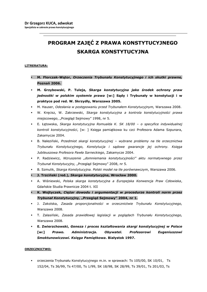 PROGRAM ZAJĘĆ Z PRAWA KONSTYTUCYJNEGO SKARGA