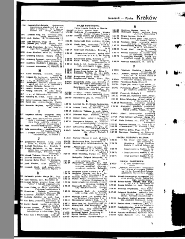 Generali — Pyrka KrakÓW 115 41 Oenerall-Port-Polonla, zjednoczon. towarzystwa ubezpieczeń S.A. od dział w Krakowie Nr 1 (dawny oddział tow. ubezp. ,,Polonia , Basztowa 24 IR43 Uerhardt FUIp, Inż., mierniczy przy sięgły, Kasprowicza 12 4352 Gluth Marian, dr, Kremerowska 12 m. 3 7007 Gold Salomon, Długa 88 2122 Golińskl Jan, lekarz miejski, Gra bowskiego 4 4157 Grado Eugeniusz, dyrektor Państwo wego Banku Rolnego, m., pl. Ka zimierza Wielkiego 3 2085 Gross Abraham, skład jaj, Krakow ska St 0373 Orünberg Edward, Oskara Kolber ga 16 74 06 Grünberg Zygmunt, nowoczesne urzą dzenia wnętrz. Orodzka 48 1605 Gumińscy Kazimierz I Jadwiga, al. Słowackiego 19 2 Gutowski Aleksander, dr. Wenecka 19 KOLEJE PAŃSTWOWE: N Parowozownia Kraków — Ptaszów: •104 47 — Stacja Kraków Dąbie. 84 01 Najchaus Markus, Pawia 18 17612 Kolejowe Przysposobienie Wojsko 1188 53 Ncbenzahl Janusz, zastępca firmy we, Zarząd Okręgu, Bosacka 4 „Lenko", Mazowiecka 7 Komisja studiów ligi popierania tury 16373 Neiger Szymon, 42 216 89 styki, (studium turyzmu), Grodz 126 76 Neuberg Antoni Dietla Józef I Ska, hurtow ka 64 nia biżuterii. Sienna 2 2 16 84 Komornicki Prot, architekt, Grottge 1 7 1 1 1 Neumann Mina, pracownia sukien ra 22 m. 2 damskich, al. Słowackiego l l a 216 41 Konik Leon, restauracja I bufet ży 145 75 Niewiadomski Marian, Int., em. rad wiecki „Pod teatrem", Szpital ca M. K., Łobzowska 4 na 38 pracownia obuwia, 2 2017 Kozłowski Władysław, Batorego 1 2 20 55 Nowak Józef, św. Tomasza 25 m. 4 2 20 70 Nowicki Eustachy, dr, kurator okrę 216 49 , ,Krakowska-Cracovia", spółka tran gu szkolnego, 18 sportowa, sp. z o. o., św. Gertru- 100 78 Nowomiejskl Chasklel, Spadzista wyrób ory dy 29 ginalnych esencji do wódek Rei 216 85 Krassowska Zofia, Retoryka 22 ch eta, Bonerowska 1 1 ' 215 98 Kraus Henryk, sędzia okręgowy, Krowoderska 15 216 59 Numrych Władysław, Św. Jana 31 18214 Krebs I . , inż.. Instalacje centr. ogrze wań, wodociągów i gazu, Dunin8 2 20 46 Krieser Salomon, KrakusaWąsowlcza 8 14102 Pająkowie Stanisław i Kamila, a.'. 2-2277 Kropaczkowa Janina, św. Filipa H 5 Słowackiego l l a 47 99 Haber Maurycy, urzędnik, Konar 1 28 36 Krzemeckł Andrzej, dr, Inż., profe 2 20 31 „Pamor", labryka wyrobów papiero sor, al. Słowackiego l l a skiego 44 216 86 wych, wl. M. Parasol, Dietla 36 1761 Halpern B.. hurtownia towarów ko 2 2 1 2 1 Krzepowska Józefa. Polna 1 Państwowy Zarząd Wodny, Krzyżanowski Marian, lekarz, Dłu 2 20 60 — kierownik zarządu, Józefińska 14 lonialnych, sw. Gertrudy 26 g i 8 5 205 52 Paschkowa Maria, Długa 88 029 — m., al. Krasińskiego 18 2 20 24 17 60 „Hamoryb", handlowa centrala nior- 2 2014 Krzyżańska Zofia, mgr. Szpitalna 25 Kursy kierowców samochodowych Ja 167 04 Peiper Jan, emeryt kolei państw., al. skich ryb. Ska z o. o., Stolarska 6 Słowackiego l l a na Rippera, Smoleńsk 31 10)5 Hendler Stefania, Sarego 24 Kwiatkowski Jan, sprzedaż hurtowna 163 73 Perfumeria „Rena", właściciele: Nei 1151 Herstal Stanisław, m., Biskupia 8/7 ger Szymon i Goldstein Szymon. I detaliczna węgla I koksu, Za5758 Herzog Edward, dr, adw. kanc, Dietla 42 Sławkowska 25 15416 — biura I składy (centrala)błocie 2 I 2 20 27 Peszes A., Biskupia 3 11203 — miejscowe biuro zamówień I kasa, 4847 — m., al. Mickiewicza 65 1 81 53 Petela Jan, wytwórnia mebli „Stróg", 4058 Holzberg Sz. 1 Ska, Józefa 17 (p. Wlślna 4 100 79 Kwiatkowski Jan, m., Felicjanek Czarnowiejska 13 Pierzeksport) 6 1 22125 Peksa Władysław, dr med., major W. Holzer Leonowa, Karmelicka 11 P. Garncarska 4 m -1 Horch Jan, przemysłowiec, Duninwytwórnia środków Wąsowfcza 4 13511 Lecznica Im. dr. Cezara Onufrowlcza, •10915 Pharmadenta, dentystycznych, Św. Marka 18 al. Słowackiego l l a 30 Horowitz Mojżesz, agencja handlo generalne przedstawi wa, Dietla 52 17124 Lelman Teofil, dr, adwokat, Miko 216 96 „Phllradio", cielstwo aparatów radi.owych łajska 3 Kapsch e Solinę, Wiedeń, św. Mar 2 20 12 Llchowskl Tadeusz, dr med., lekarz. ka 20 I Czarnowiejska 32 2 16 43 „Piast", (miodosytnla), wytwórnia 17 Inspektor szkolny krakowski miej 20610 Lilienthal Hugo, architekt, Konar miodu, Grodzka 6 skiego 34 ski, Podzamcze 1 Garga W., 99 „Iter", konc. biuro pośredn. paszpor- 16016 Lipsker Leon, cukry i owoce, Kar 1 77 15 Piece kaflowe wykonuje Langiewicza 18 melicka 6 towo - wizowego, przedstawiciel al. Sło stwo biura podroży ,,Argos" w 127 76 Llwszycowa Salomeą, dr, laborato 17167 Piela Tadeusz, inż., arch.,wackiego 6 rium bakterioioglczno - chemiczne, Krakowie, Szczepańska 7 Sarego 17 I p. 22277 Pielówna Stefania, św. Filipa 5 m. 8 I zba lekarsko-dentystyczna okręgo Lubaczewski Marian, prof. gim., Du wa, Garbarska 16 216 53 1 4C 58 „Pierzeksport", Sz. Holzberg I Ska, nin-Wąsowlcza 14 Izba przemysłowo - handlowa, gabi Jozefa 17 Lubelski Wł.. reprrzentacja samocho net prezesa. Długa 1 dów „Steyr". Podwale 5 2 20 39 Pisarska Janina, Długa 29 m. 3 — Delegat Polskiego Instytutu Roz 127 33 Pischlnger Stanisław, dr. Pękrzyca-' rachunkowego, inż Białek Z. M Grudzińskiego 11 POCZTA, TELEORAF i TELEFON: 118 22 Machauf Edward, dr med., pl. Szcze pański 5 2 22 21 — Rej. Urząd telef.-telegr., kier sieci miejskiej, b 09 Jakubowski Seweryn, wlaśc. f-my 2 20 36 Machaufowa Lola, Jagiellońska 9 — Obwodowy Urząd pocztowy Lorie, m., Krzywa 12 (p. Lorie) 21690 Magiera Jerzy, technik-mechanik, Be 216 79 ma 5 Kraków 1, oddział listowy na 'S Jasiński Stanisław, ks., Poselska 7 „Makulatura", skup I sprzedaż sta dawczy 19 Jelonek Kazimierz, dr, dyr. komu rego papieru, A. Z Mysona, Szy 216 73 — Urząd pocztowy Kraków 4, na nalnej kasy oszczędności powiatu manowskiego 12 m., magazyn, Jńczelnik, m. krakowskiego, Pękrzyca - Gru zefłtow 3 — Urząd pocztowy Kraków 5, na dzińskiego 2 2 2013 Malik Stanisław, fryzjer, św. Toma 2 16 72 czelnik, m 06 Jelonek Tadeusz, Biskupia 14 m. 6 sza 22 216 71 — Urząd pocztowy Kraków -6, n.i41 Ju