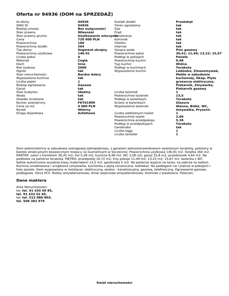 Oferta nr 94936 (DOM na SPRZEDAŻ)