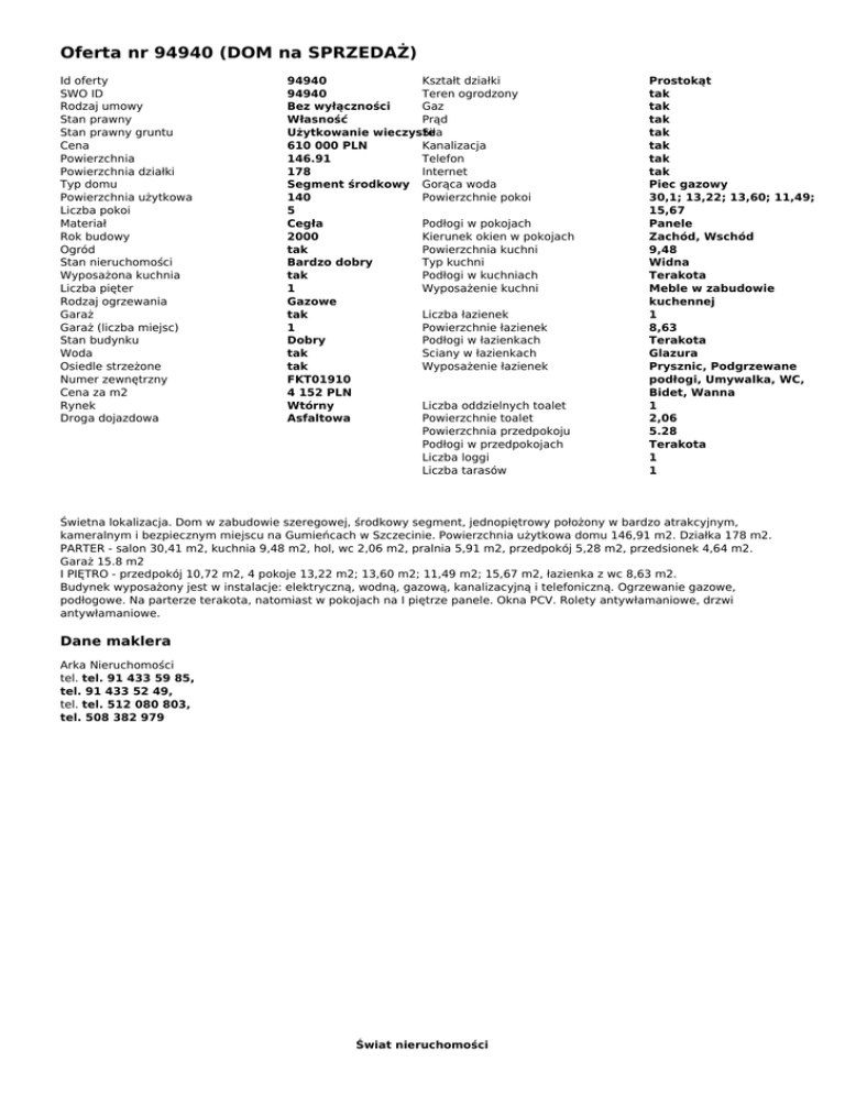 Oferta nr 94940 (DOM na SPRZEDAŻ)