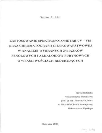 chromatografii cienkowarstwowej”, Zeszyty Nauk., Pol. Śl., 290, Chemia 54, Gliwice, 1970.