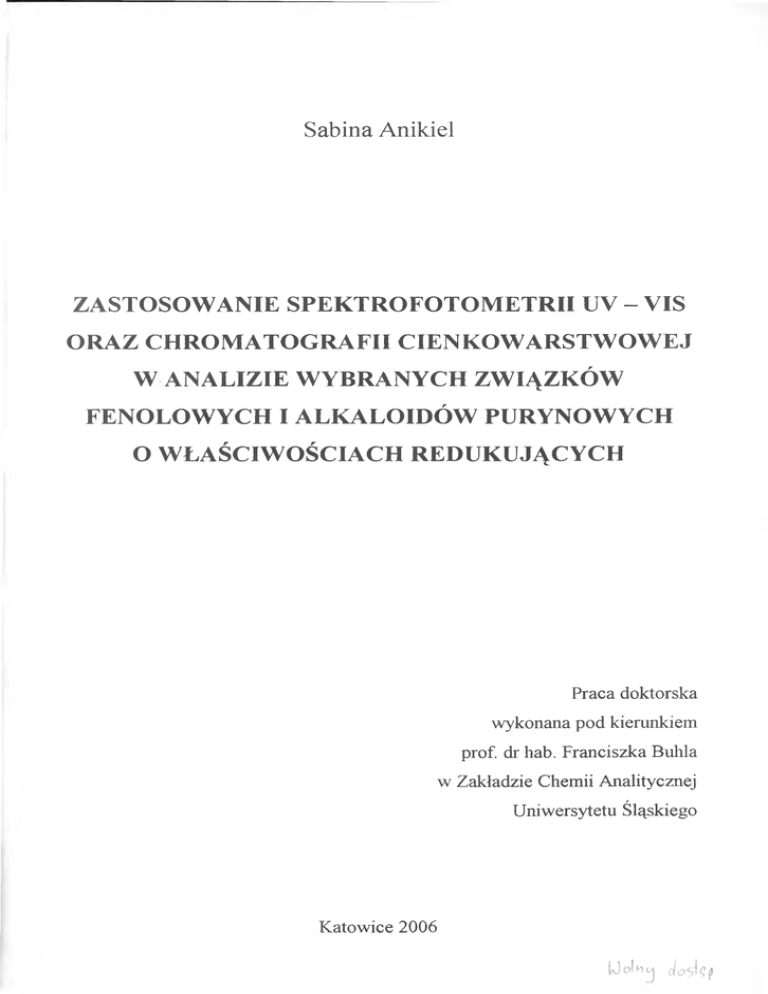 5.1.3. Krzywa wzorcowa do planimetrycznego oznaczania (+)-katechiny............. 121