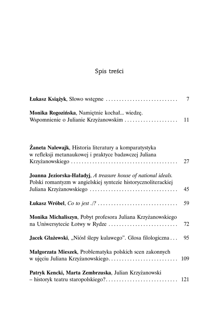 Krzyżanowski. Spojrzenie po latach - Spis treści i słowo