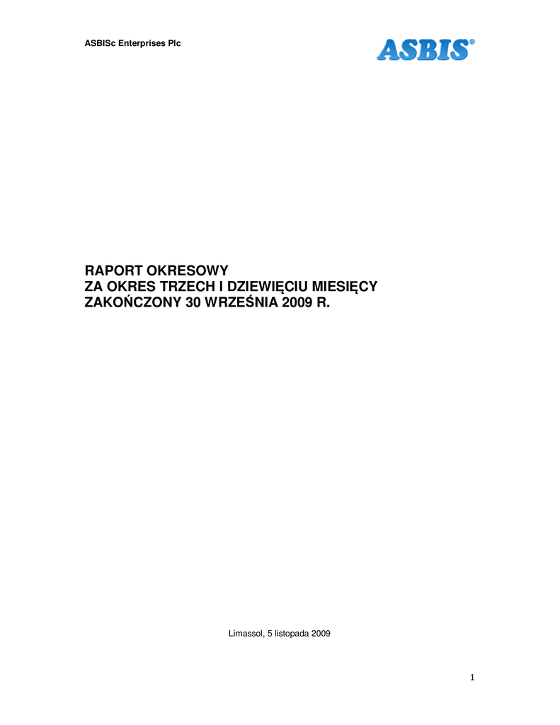 Zawarte w niniejszym raporcie kwartalnym odwołania do Spółki dotyczą spółki ASBISc Enterprises Plc, natomiast
