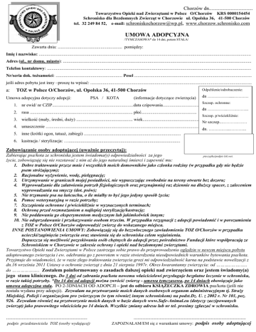 umowa adopcyjna - schronisko w Chorzowie