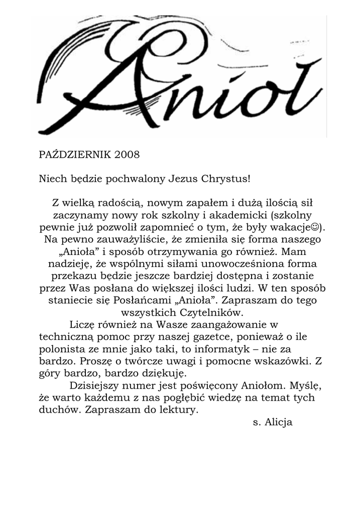 ANIOŁ październik 2008 - Zgromadzenie Sióstr od Aniołów