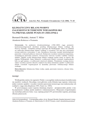 KLIMATYCZNY BILANS WODNY ZALESIONYCH TERENÓW