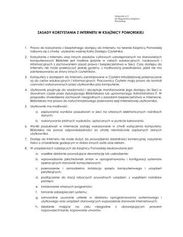ZASADY KORZYSTANIA Z INTERNETU W KSIĄŻNICY POMORSKIEJ