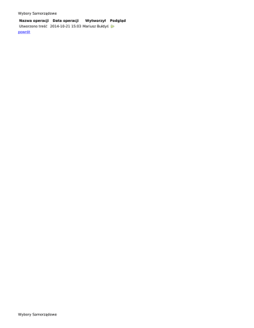Wybory Samorządowe Nazwa operacji Data operacji Wytworzył Utworzono treść 2014-10-21 15:03 Mariusz Bułdyś powrót Wybory Samorządowe Podgląd