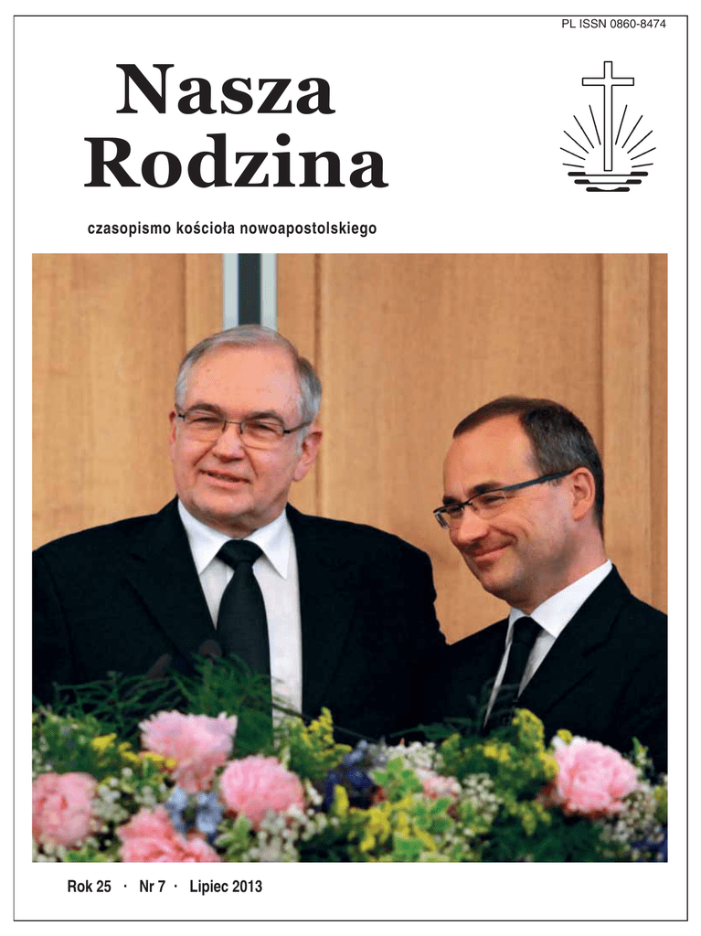 PL ISSN 0860-8474 Nasza Rodzina czasopismo kościoła nowoapostolskiego Rok 25 · Nr 7 · Lipiec 2013 S Ł O W O W S T Ę P N E Jeżeli przyznajesz się do Pana, to Pan przyznaje się do ciebie D o proroka Jeremiasza kiedyś Pan powiedział: „Jeżeli zawrócisz, i Ja się zwrócę do ciebie”. Wypowiedź ta jest odpowiedzią Boga na wyznanie Jeremiasza, w którym prorok przedstawiał obciążenia związane z urzędem prorockim; Jeremiasz przyjmował Słowo Boże niczym pokarm, a więc chętnie i z pragnieniem, ale brakowało mu radości, był osamotniony, obciążony zadaniem Bożym – tak bardzo przygnębiała go odpowiedzialność związana z poleceniem zwiastowania. W tej sytuacji Bóg darował prorokowi zacytowane słowa pocieszenia. Przyjmijmy te słowa jako Boże przyrzeczenie skierowane również do nas współcześnie: Jeżeli przyznajesz się do Pana, to Pan przyznaje się do ciebie. W tak prosty sposób można określić swoje relacje z Bogiem! Tak prosto… ale można te słowa zaopatrzyć też w znak zapytania: Jeżeli przyznajesz się do Pana, to Pan przyznaje się do ciebie? Niejeden może pomyśleć: Spójrzcie na tego lub tamtego, który służy Bogu, który stale składa ofiary, który pracuje dla Pana, a jednak wiedzie się jemu źle. Te słowa nie utraciły na aktualności. Niezależnie od tego jak, kiedy i gdzie, to jednak się ujawni, że Pan przyznaje się do tego, kto przyznaje się do Pana. Być może nie będzie to widoczne na pierwszy rzut oka, być może nie zawsze w ziemskich sprawach, ale będzie to widoczne, jeśli popatrzy się na całość. Ostatecznie wszystko objawi się w dniu Pana. Wszystko leży w suwerenności Boga, jak i kiedy się do nas przyznaje. Kiedy przyznajemy się do Pana, wtenczas Pan przyznaje się też do nas i my to odczuwamy. Nie jest to jednak takie proste. Być może myślimy: Tak, przyznaję się do Pana. Ale czy rzeczywiście? Przykład Jeremiasza pokazuje, że Pan stawia wysokie wymagania. Prorok wówczas się uskarżał, że brzemię sprawowanego urzędu i z tym związana odpowiedzialność, stały się dla niego bardzo ciężkie. Biadolił, że nie powołał siebie na ten urząd. Użalając się nad sobą oddalał się od Pana. Wówczas usłyszał zacytowane słowa, przez które przebrzmiewa też nagana: „Jeżeli zawrócisz, i Ja się zwrócę do ciebie”! Prorok pomimo obciążeń i przeciwności, na które napotykało jego zwiastowanie, trwał przy Panu. Niech będzie to też wzorem dla nas. Sytuacja Jeremiasza pokazuje, że nie zawsze jest łatwo przyznawać się do Pana. Na przykład, gdy się narzeka – a kto tego nie robi? – mówiąc: „Czy to wszystko tak musi być? Czy Pan nie mógłby nieco dobitniej przyznawać się do mnie?”. Być może zrobiło się to lub owo, a jednak nie przyniosło to sukcesu. W ciągu dnia mamy wiele różnych myśli, a przyznawanie się do Pana we wszystkich sprawach, także w tych najmniejszych, wymaga naszego pełnego zaangażowania. Kto jednak rzeczywiście przyznaje się całkowicie do Pana, także w małych sprawach, ten doświadcza, że Pan przyznaje się do niego. Czasami trzeba przejść fazy cierpień. Czasami jest coś, czego nie można zmienić. To jednak można przeżyć, że Pan przyznaje się do tego, kto przyznaje się do Pana. Z całego serca życzymy, aby każdy doświadczał tego wciąż na nowo. Módlmy się też o to i konsekwentnie się trzymajmy tej Bożej prawdy: Jeżeli przyznajesz się do Pana, to Pan przyznaje się do ciebie. (Z nabożeństwa Głównego Apostoła Wilhelma Lebera) 2 N A B O Ż E Ń S T W O Dzieci witają Głównego Apostoła Wilhelma Lebera i osoby towarzyszące Kościół najstarszego zboru w Niemczech Hamburg-Borgfelde, założonego w 1863 roku „Oto nadchodzi twoje zbawienie”, to przyrzeczenie Boże z Izajasza 62, 11 Główny Apostoł Wilhelm Leber postawił w centrum swojego ostatniego nabożeństwa, w niedzielę zielonoświątkową 19 maja br. w zborze Hamburg-Borgfelde. Na tym nabożeństwie ustanowił swojego następcę, Głównego Apostoła Jeana-Luca Schneidera (53 l.) z Francji. Zielone Świątki w Hamburgu/Niemcy Na to ważne wydarzenie w roku jubileuszowym, do Kościoła terytorialnego Niemcy Północne przybyli wszyscy aktywnie działający apostołowie okręgowi i apostołowie okręgowi pomocniczy z całego świata oraz czterdziestu jeden apostołów z Europy. Miliony wiernych przeżyły transmitowane nabożeństwo z najstarszego zboru nowoapostolskiego w Niemczech. Zbór Hamburg-Borgfelde został założony przed 150 laty. Weekend zielonoświątkowy Główny Apostoł rozpoczął sobotnią Konferencją Apostołów. Przy tym spojrzał wstecz na swój ośmioletni czas urzędowania i prosił apostołów, żeby obdarzyć zaufaniem nowego Głównego Apostoła. Jednocześnie podziękował apostołom okręgowym i apostołom za wszelką pracę i wsparcie, za modlitwy oraz gotowość do kształtowania i podtrzymywania rozwoju Kościoła. W sobotę po południu w Laeiszhalle w Hamburgu odbył się koncert pod mottem: „I feel the spirit” (Odczuwam Ducha). Na przemian pięć różnych chórów i orkiestr z Kościoła terytorialnego Niemcy Północne przedstawiło szerokie spektrum muzyki sakralnej. 3 N A B O Ż E Ń S T W O „Wy zaś pozostańcie w mieście, aż zostaniecie przyobleczeni mocą z wysokości”. – Ew. Łukasza 24, z 49 – M ili bracia i siostry, mili goście, zwracam się do każdego z was i pragnę otworzyć swoje serce i pokazać swoją radość z tego, że jesteśmy tu zgromadzeni w takiej świątecznej atmosferze. Niechby był odczuwalny dziś prawdziwy powiew Ducha Świętego! Jako słowo błogosławieństwa z okazji Zielonych Świątek chciałbym przeczytać słowa z 11. wersetu 62. rozdziału Księgi Izajasza: „Oto Pan ogłosił aż po krańce ziemi: Powiedzcie córce syjońskiej: Oto nadchodzi twoje zbawienie”. To słowo rozumiem jako obietnicę: Pan zaingeruje! Nie zawsze w sposób, jakiego oczekujemy