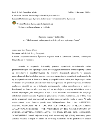 Recenzja prof. dr hab. Stanisława Mleko