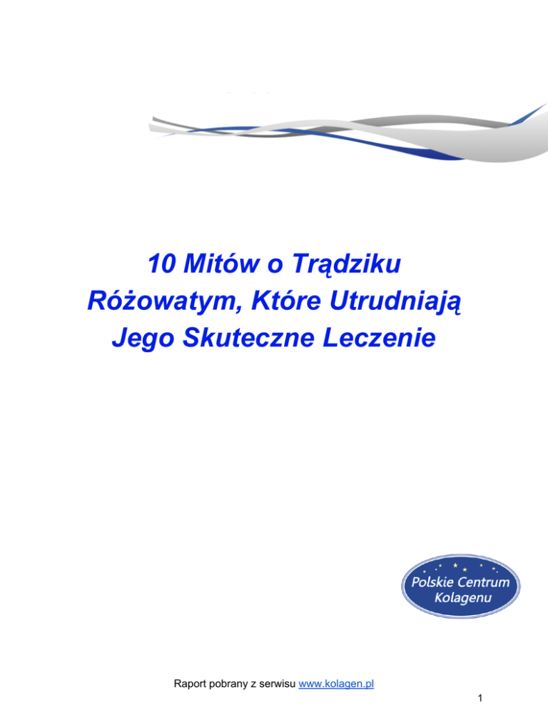 10 Mitów o Trądziku Różowatym, Które Utrudniają Jego Skuteczne Leczenie Raport pobrany z serwisu www.kolagen.pl 1 Trądzik różowaty to choroba, której pozbyć się jest niezwykle trudno. Wciąż nie znamy całkowitego i trwałego sposobu na jego wyeliminowanie. Objawy tej choroby możemy jednak skutecznie zredukować . Potrzebna jest odpowiednia i SYSTEMATYCZNA pielęgnacja oraz przestrzeganie pewnych praw, o których powiem Ci w kolejnych wiadomościach. Teraz poznasz 10 popularnych mitów na temat trądziku różowatego, które utrudniają jego skuteczne leczenie. Zaczynamy. MIT #1 Częste mycie twarzy zwalczy trądzik Oczywiście nie jest to prawdą. Jeśli ktoś polecał Ci częste mycie twarzy, jako skuteczny sposób na trądzik różowaty, to na pewno nie miał racji. Dlaczego? Częste i dokładne mycie twarzy może na początku minimalizować łojotok, jednak może także pogorszyć pracę gruczołów łojowych. Powoduje to zwiększenie aktywności wydzielania łoju. Warto zadbać o odpowiednie mycie twarzy i stosowanie odpowiednich preparatów, które nie wysuszają i nie podrażniają skóry, jednak zdecydowanie częste mycie twarzy nie jest lekarstwem na trądzik różowaty . MIT #2 Wyciśnij go! Wyciskanie to bardzo popularny sposób walki z trądzikiem. Nie jest to jednak dobre rozwiązanie. Może to bowiem powiększać stan zapalny i tylko zwiększać dolegliwości związane z trądzikiem. Jeśli więc chcesz skutecznie wyleczyć trądzik, zapomnij o wyciskaniu! Raport pobrany z serwisu www.kolagen.pl 2 MIT #3 Przejdzie samo Istnieje wiele różnych rodzajów trądziku. Niektóre z nich faktycznie przechodzą samoistnie, jak na przykład trądzik młodzieńczy. Niestety, w przypadku trądziku różowatego nie ma tak dobrze. Nieleczony trądzik różowaty może dokuczać latami. Poza tym pamiętaj, że nie jest to jedynie problem skórny. Trądzik różowaty ma także ogromny wpływ na Twoje samopoczucie i samoocenę. Dlatego nie ma na co czekać. Trądzik różowaty sam się nie wyleczy. MIT #4 Trądzik jest zaraźliwy Bez obaw. Trądzik różowaty nie jest chorobą zakaźną i nie można się nim tak po prostu zarazić. Nie należy jednak używać wspólnych kosmetyków, ręczników, czy innych wspólnych przedmiotów, która mają kontakt ze zmienionymi chorobowo miejscami. MIT #5 Słońce leczy trądzik różowaty Często zaleca się kąpiele słoneczne, jako skuteczny sposób na choroby skórne, takie jak trądzik. Okazuje się jednak, że nie jest to dobrym rozwiązaniem. Słońce może co prawda łagodzić objawy trądziku, jednak efekt jest tylko pozorny i szybko przemija. Słońce wysusza zmiany trądzikowe, jednak ich nie leczy. Nadmierne opalanie może natomiast prowadzić do zaostrzenia choroby. Raport pobrany z serwisu www.kolagen.pl 3 MIT #6 Trądzik? Mnie to nie dotyczy Trądzik różowaty zaczyna się niewinnie – od rumieńca. Obejmuje czoło, nos, brodę i policzki, ale po jakimś czasie znika. Sprawia wówczas wrażenie, że problem już minął. Niestety, z czasem rumieniec pojawia się coraz częściej, skóra robi się cieńsza, piecze, a podczas zabiegów pielęgnacyjnych za każdym razem czujesz dyskomfort. Może to być pierwszy objaw trądziku różowatego, więc nie lekceważ tego! Nie ma pewności także, że jeśli do tej pory nie dotyczył Cię problem trądziku różowatego, to nigdy już Cię nie dotknie ta dolegliwość. Trądzik różowaty pojawia się bowiem u osób dojrzałych, kobiet i mężczyzn o skórze suchej i łojotokowej. W zależności od etapu choroby, może wyglądać nieco inaczej. Najczęściej pierwsze objawy trądziku różowatego pojawiają się po 40. roku życia. MIT #7 Kobiety i mężczyźni są tak samo podatni na trądzik różowaty Choć zarówno kobiety, jak i mężczyźni mogą borykać się z trądzikiem różowatym, to jednak większą skłonność do trądziku różowatego wykazują kobiety. Wynika to prawdopodobnie z wahań stężeń hormonów – zarówno dobowych, tygodniowych, jak i miesięcznych. Inną sprawą z kolei jest fakt, że objawy trądziku różowatego u mężczyzn są dużo silniejsze. U mężczyzn także obserwuje się zwłóknienia gruczołów łojowych i szpecący, kalafiorowaty przerost nosa. MIT #8 Przyczyną powstawania trądziku różowatego jest zła higiena Raport pobrany z serwisu www.kolagen.pl 4 Nic bardziej mylnego. Nawet najdokładniej myta skóra twarzy nie stanie się przez to lepiej zabezpieczona przed powstawaniem trądziku różowatego. Wręcz przeciwnie. Zbyt nadgorliwa higiena może podrażniać skórę i powodować nasilenie objawów trądziku. MIT #9 Mając trądzik nie można stosować kosmetyków Mit ten z jednej strony można uznać z prawdziwy, ponieważ skóra dotknięta trądzikiem różowatym może charakteryzować się nietolerancją na kosmetyki. Nawet tak wrażliwa skóra przyjmie jednak niealergizujące kosmetyki wysokiej jakości. O skórę dotkniętą trądzikiem różowatym należy dbać tak, jak o skórę wyjątkowo wrażliwą. Jeśli więc sięgasz po kosmetyki z najwyższej półki, możesz je stosować bez obaw. Warto także stosować kosmetyki naturalne. MIT #10 Dieta nie ma wpływu na trądzik różowaty Coraz częściej można słyszeć taką opinię, że dieta nie ma wpływu na powstawanie trądziku różowatego. Większy wpływ mają na to działające na skórę czynniki zewnętrzne. Częściowo jest to prawda, jednak nie da się ukryć, że nieprawidłowa dieta może być przyczyną nasilenia objawów trądziku różowatego. Cierpiąc na trądzik różowaty musisz unikać szczególnie takich produktów, jak: kawa, herbata, alkohol, czekolada, pikantne produkty, ocet, marynaty i owoce cytrusowe. PODSUMOWUJĄC.. Jak to powiedział ktoś mądry: “Robiąc wciąż to samo, nie oczekuj nowych rezultatów”. Dlatego musisz wprowadzić kilka drobnych zmian do swego życia, jeżeli chcesz cofnąć rumień i przywrócić swoje naturalne piękno. Ra