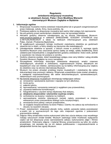 1 Regulamin zwiedzania ekspozycji muzealnej w obiektach Zamek