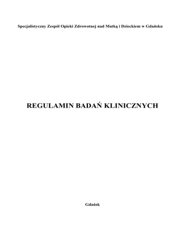 regulamin badań klinicznych - Szpital Dziecięcy "POLANKI"