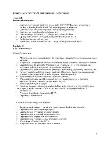 REGULAMIN CENTRUM AKTYWNOŚCI SENIORÓW Rozdział I