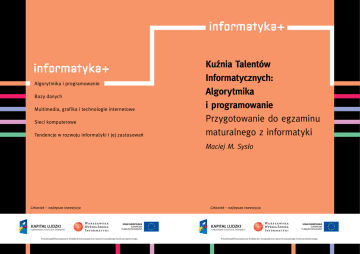 Kuźnia Talentów Informatycznych: Algorytmika i programowanie Przygotowanie do egzaminu maturalnego z informatyki Maciej M. Sysło Przygotowanie do egzaminu maturalnego z informatyki Rodzaj zajęć: Kuźnia Talentów Informatycznych Tytuł: Przygotowanie do egzaminu maturalnego z informatyki Autor: prof. dr hab. Maciej M Sysło Redaktor merytoryczny: prof. dr hab. Maciej M Sysło Zeszyt dydaktyczny opracowany w ramach projektu edukacyjnego Informatyka+ – ponadregionalny program rozwijania kompetencji uczniów szkół ponadgimnazjalnych w zakresie technologii informacyjno-komunikacyjnych (ICT). www.informatykaplus.edu.pl [email protected] Wydawca: Warszawska Wyższa Szkoła Informatyki ul. Lewartowskiego 17, 00-169 Warszawa www.wwsi.edu.pl [email protected] Skład: Recontra Studio Graficzne Warszawa 2010 Copyright © Warszawska Wyższa Szkoła Informatyki 2010 Publikacja nie jest przeznaczona do sprzedaży. Przygotowanie do egzaminu maturalnego z informatyki Maciej M. Sysło Uniwersytet Wrocławski, UMK w Toruniu [email protected], [email protected] < > Informatyka + Streszczenie Ten kurs jest poświęcony przygotowaniu uczniów do zdawania egzaminu maturalnego z informatyki. Informatyka jako przedmiot szkolny obrosła w wiele nieporozumień. Niektórzy uczniowie, sprawni w posługiwaniu się komputerem uważają, że matura z informatyki jest sprawdzianem głównie tych ich umiejętności. Jest jednak inaczej – ten egzamin wymaga solidnego przygotowania się z uwzględnieniem standardów wymagań egzaminacyjnych z informatyki. Zwracamy również uwagę na nie mniej ważną stronę techniczną matury z Informatyki, gdyż w znaczący sposób powodzenie na tym egzaminie zależy od prawidłowego i bezawaryjnego posługiwania sprzętem komputerowym i jego oprogramowaniem przez zdających. W Części I materiałów prowadzimy rozważania ogólne na temat matury z informatyki oraz komentujemy najważniejsze dokumenty i wypływające z nich wnioski związane z tym egzaminem. W Części II zamieszczamy zadania z poprzednich egzaminów maturalnych z informatyki, większość z nich komentując. Zadania w tej części sa podzielone na kilka grup. Zajęcia kursu mają charakter warsztatowy i polegają głównie na rozwiązywaniu zadań maturalnych z poprzednich egzaminów lub podobnych zadań. Spis treści Wprowadzenie ....................................................................................................................................................... 5 Część I. Dokumenty i rozważania ogólne........................................................................................................... 5 1. Egzamin maturalny z informatyki – przepisy, dokumenty.................................................................................... 5 2. Przebieg egzaminu maturalnego z informatyki................................................................................................... 6 3. Wymagania egzaminacyjne z informatyki a zakres zajęć szkolnych.................................................................... 7 4. Algorytm, algorytmika, algorytmiczne rozwiązywanie zadań............................................................................. 7 5. Zakres i postać zadań....................................................................................................................................... 10 6. Ocenianie rozwiązań......................................................................................................................................... 11 7. Wskazówki metodyczne.................................................................................................................................... 11 Część II. Przykładowe zadania maturalne........................................................................................................ 12 8. Zadania algorytmiczne z Arkuszy I.................................................................................................................... 12 9. Zadania algorytmiczne z Arkuszy II................................................................................................................... 27 10. Algorytmika – poziom podstawowy (od 2009)............................................................................................... 33 11. Algorytmika – poziom rozszerzony (od 2009)................................................................................................. 34 12 Zadania różne.................................................................................................................................................. 34 13. Zadania z pełna dokumentacją........................................................................................................................ 35 Literatura ........................................................................................................................................... 39 > Przygotowanie do egzaminu maturalnego z informatyki < > Wprowadzenie Zgodnie z obowiązującymi przepisami, informatyka jest jednym z dodatkowych przedmiotów do wyboru na egzaminie maturalnym i może być zdawana na poziomie podstawowym albo rozszerzonym. Ten kurs ma na celu, w formie zajęć warsztatowych, udzielenie pomocy uczniom przygotowującym się do tego egzaminu. Część I. Dokumenty i rozważania ogólne Niewątpliwie pewną trudnością w przygotowaniach do tego egzaminu a później w jego zdawaniu jest fakt, iż jest to jedyny przedmiot ogólnokształcący, z którego egzamin maturalny odbywa się z wykorzystaniem, istotnych dla tego egzaminu i zdających, pomocy dydaktycznych, jakimi są komputer i jego oprogramowanie. Trudność ta leży zarówno po stronie organizatorów tego egzaminu, jak i zwłaszcza po stronie zdających. Z tego względu istotne są przepisy i ustalenia związane z przebiegiem tego egzaminu, w tym – dotyczące posługiwania się komputerem i jego oprogramowaniem. Te kwestie formalne 