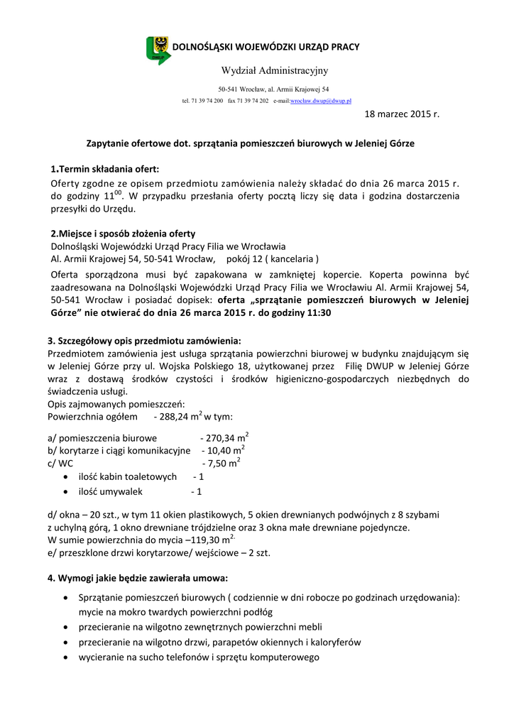 Zapytanie ofertowe - Dolnośląski Wojewódzki Urząd Pracy