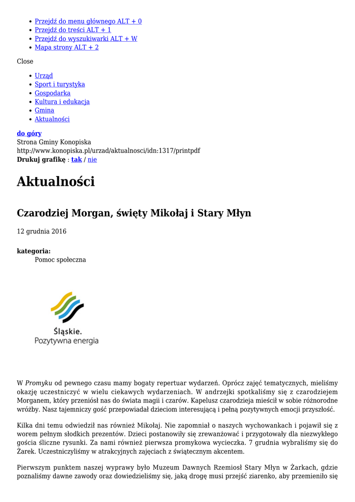 Przejdź do menu głównego ALT + 0 Przejdź do treści ALT + 1 Przejdź do wyszukiwarki ALT + W Mapa strony ALT + 2 Close Urząd Sport i turystyka Gospodarka Kultura i edukacja Gmina Aktualności do góry Strona Gminy Konopiska http://www.konopiska.pl/urzad/aktualnosci/idn:1317/printpdf Drukuj grafikę : tak / nie Aktualności Czarodziej Morgan, święty Mikołaj i Stary Młyn 12 grudnia 2016 kategoria: Pomoc społeczna W Promyku od pewnego czasu mamy bogaty repertuar wydarzeń. Oprócz zajęć tematycznych, mieliśmy okazję uczestniczyć w wielu ciekawych wydarzeniach. W andrzejki spotkaliśmy się z czarodziejem Morganem, który przeniósł nas do świata magii i czarów. Kapelusz czarodzieja mieścił w sobie różnorodne wróżby. Nasz tajemniczy gość przepowiadał dzieciom interesującą i pełną pozytywnych emocji przyszłość. Kilka dni temu odwiedził nas również Mikołaj. Nie zapomniał o naszych wychowankach i pojawił się z worem pełnym słodkich prezentów. Dzieci postanowiły się zrewanżować i przygotowały dla niezwykłego gościa śliczne rysunki. Za nami również pierwsza promykowa wycieczka. 7 grudnia wybraliśmy się do Żarek. Uczestniczyliśmy w atrakcyjnych zajęciach z świątecznym akcentem. Pierwszym punktem naszej wyprawy było Muzeum Dawnych Rzemiosł Stary Młyn w Żarkach, gdzie poznaliśmy dawne zawody oraz dowiedzieliśmy się, jaką drogę musi przejść ziarenko, aby przemieniło się w pyszny chleb, nieustannie bezkonkurencyjny na naszych stołach. Drugim etapem wycieczki były warsztaty tworzenia świątecznych lizaków w Manufakturze Słodyczy HokusPokuss. Urzekający zapach, kolory jak z bajki i własnoręcznie wykonane przepyszne lizaki były strzałem w dziesiątkę. Dzieci były zachwycone! W różowych humorach dotarliśmy do pracowni Jura, gdzie czekały na nas przemiłe panie z drucikami i sianem. Ze zwyczajnych, powszednich produktów nasze dzieci wyczarowały urocze aniołki. Na koniec wycieczki wisienka na torcie! Warsztaty wytwarzania pizzy. W restauracji Przystań Leśniów nasi młodzi podróżnicy, ubrani w malownicze fartuszki, sami przygotowali ciasto na pizzę oraz wybrali swoje ulubione składniki. Margarita, hawajska, wegetariańska – wybór należał do dzieci. Oczywiście po upieczeniu każdy delektował się smakiem swojej własnoręcznie przygotowanej potrawy. Zadowoleni i pełni pozytywnych wrażeń wróciliśmy do Konopisk. Mimo, iż rok 2016 nieubłagalnie się kończy, w Promyku czekają na nas jeszcze widowiskowy pokaz dmuchania szkła dzięki uprzejmości i pomysłowości pana Pawła, który na co dzień prowadzi u nas zajęcia z aerobiku oraz nasze świetlicowe spotkanie wigilijne z promyczkiem w tle. Już dziś serdecznie zapraszamy na nadchodzące wydarzenia, ale przede wszystkim zachęcamy do uczestnictwa w zajęciach prowadzonych od poniedziałku do piątku w godzinach 15.00-19.00. Więcej aktualnych informacji o Promyku na naszym fanpage'u... Justyna Imiołczyk Koordynator projektu 12 gru 2016 Czarodziej Morgan, święty Mikołaj i Stary Młyn Czarodziej Czarodziej Czarodziej Czarodziej Czarodziej Czarodziej Czarodziej Czarodziej Czarodziej Czarodziej Czarodziej Czarodziej Czarodziej Czarodziej Czarodziej Czarodziej Czarodziej Czarodziej Czarodziej Czarodziej Morgan, Morgan, Morgan, Morgan, Morgan, Morgan, Morgan, Morgan, Morgan, Morgan, Morgan, Morgan, Morgan, Morgan, Morgan, Morgan, Morgan, Morgan, Morgan, Morgan, Aktualności - strona 1 Aktualności - strona 2 święty święty święty święty święty święty święty święty święty święty święty święty święty święty święty święty święty święty święty święty Mikołaj Mikołaj Mikołaj Mikołaj Mikołaj Mikołaj Mikołaj Mikołaj Mikołaj Mikołaj Mikołaj Mikołaj Mikołaj Mikołaj Mikołaj Mikołaj Mikołaj Mikołaj Mikołaj Mikołaj i i i i i i i i i i i i i i i i i i i i Stary Stary Stary Stary Stary Stary Stary Stary Stary Stary Stary Stary Stary Stary Stary Stary Stary Stary Stary Stary Młyn Młyn Młyn Młyn Młyn Młyn Młyn Młyn Młyn Młyn Młyn Młyn Młyn Młyn Młyn Młyn Młyn Młyn Młyn Młyn powrót do listy aktualności
