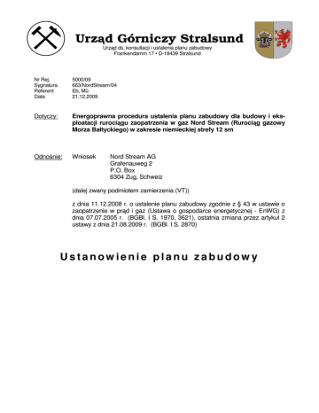 Energoprawna procedura ustalenia planu zabudowy dla budowy i eksploatacji rurociągu zaopatrzenia w gaz Nord Stream (Rurociąg gazowy